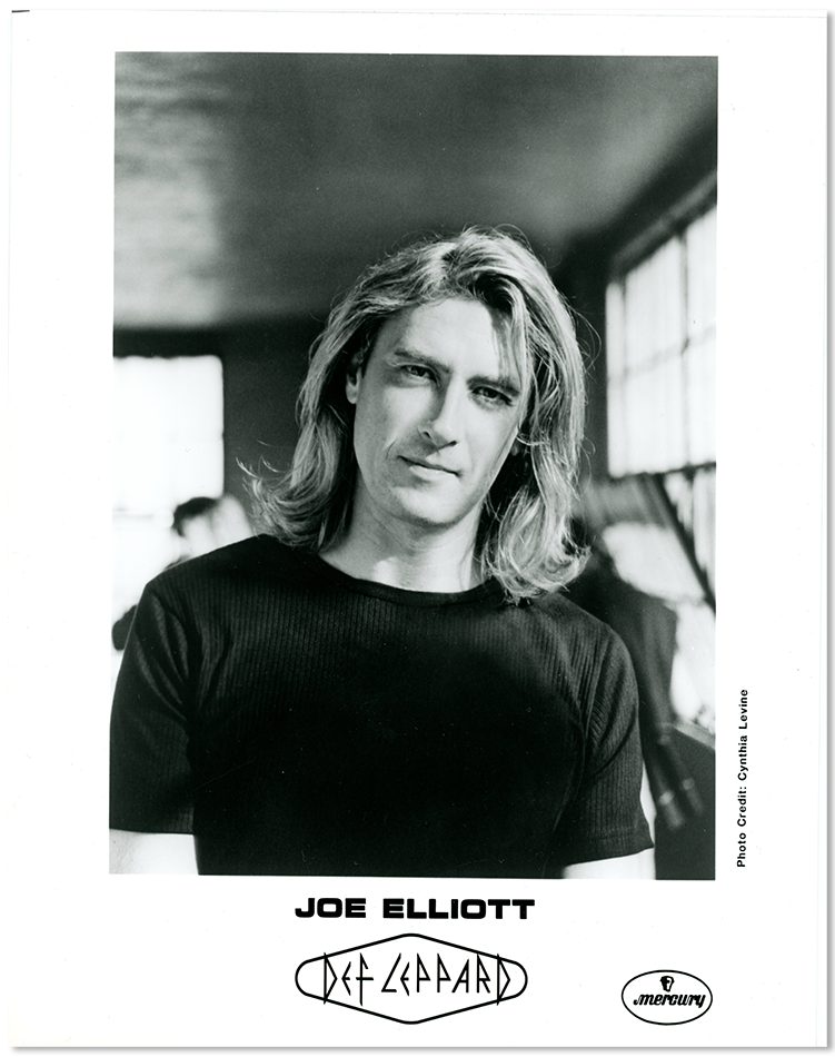 Black and white promotional photo of Joe Elliott for Mercury Records 1993. From the collection of Def Leppard.