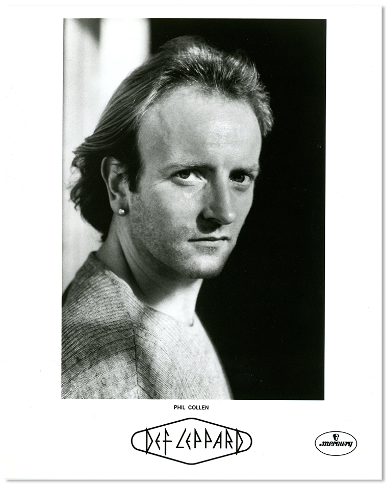 Black and white promotional photo of Phil Collen for Mercury Records. The photographer is unknown. From the collection of Def Leppard.
