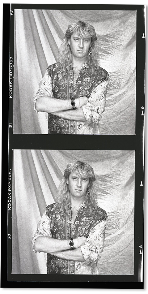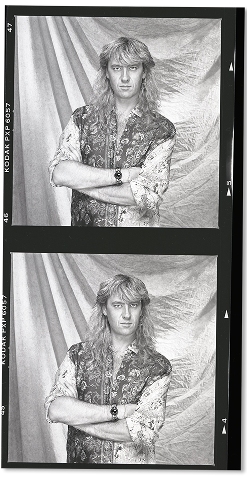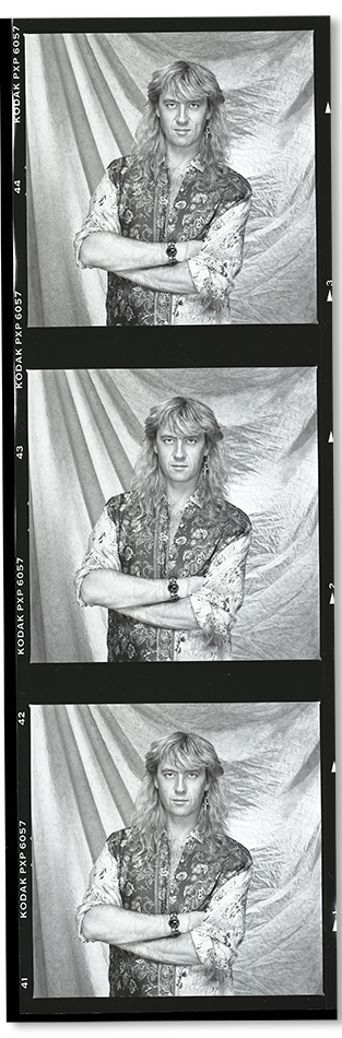 Black and white negative strips of Joe Elliott from 1992. From the collection of Def Leppard.