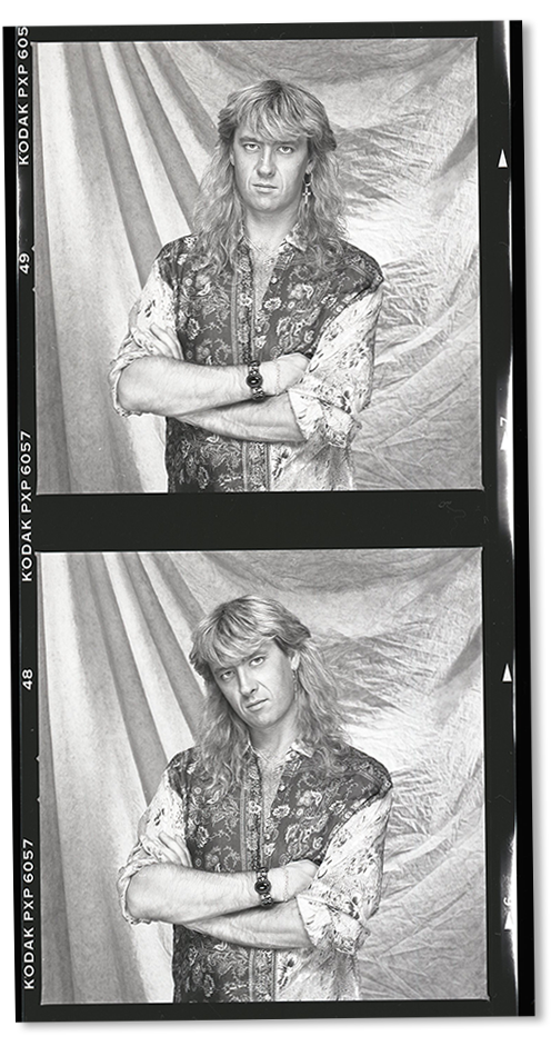 Color negative of Joe Elliott from 1992. From the collection of Def Leppard.