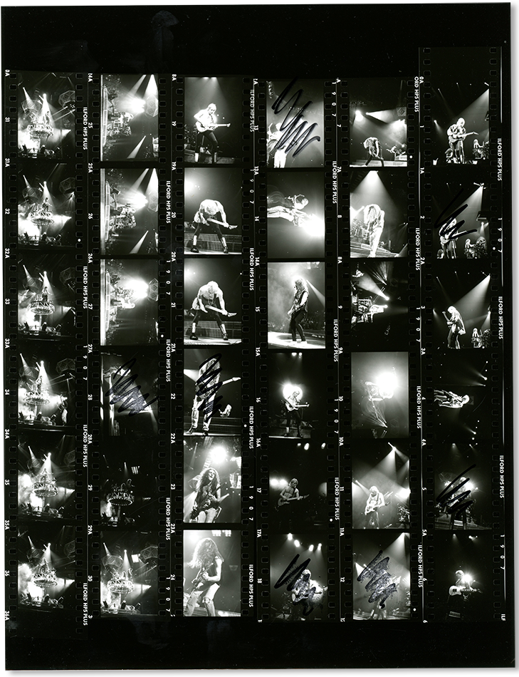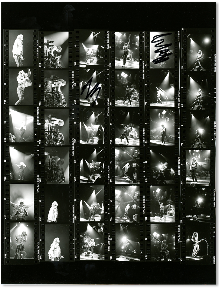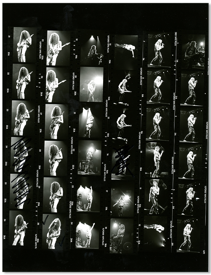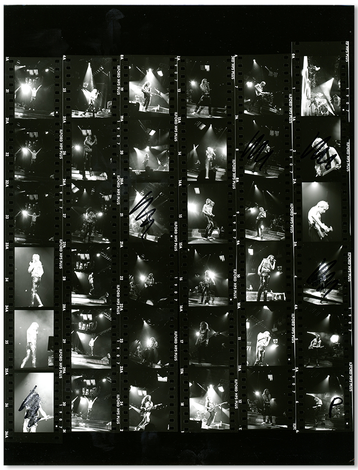1992 MTV VMAs black and white negative strips of Joe Elliott, Rick Allen, Rick Savage, Phil Collen, and Vivian Campbell. From the collection of Def Leppard.