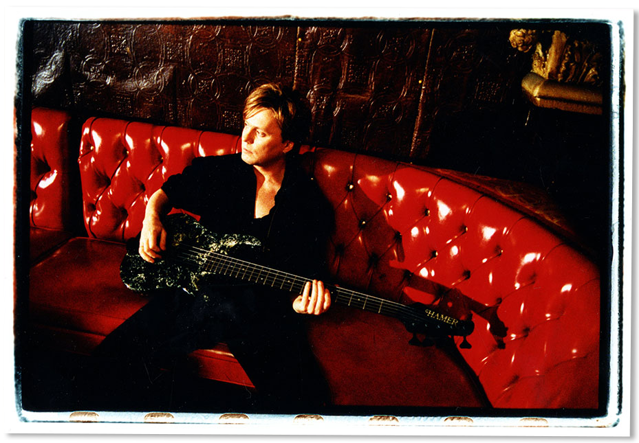 Euphoria album shoot 1999. Color promotional photo of Rick Savage. From the collection of Def Leppard.