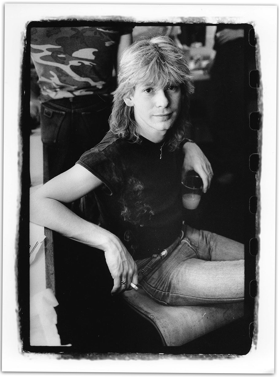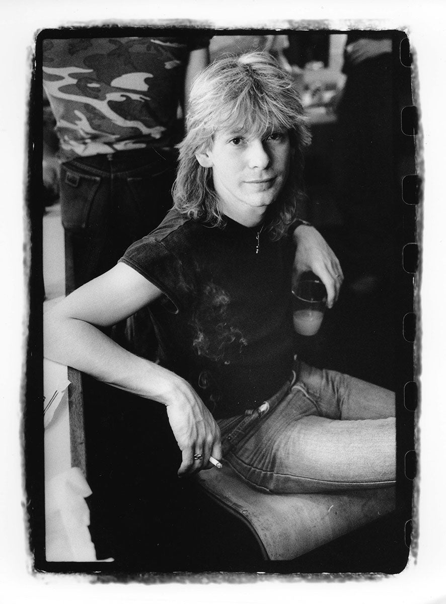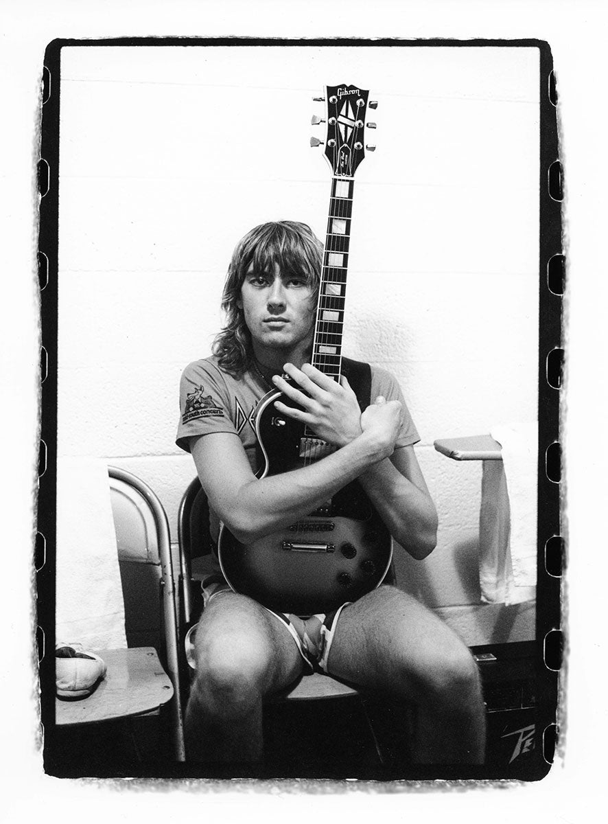 A very fresh-faced Steve Clark waits backstage at a stop on the Pyromania Tour, circa 1983. From the Collection of Def Leppard.
