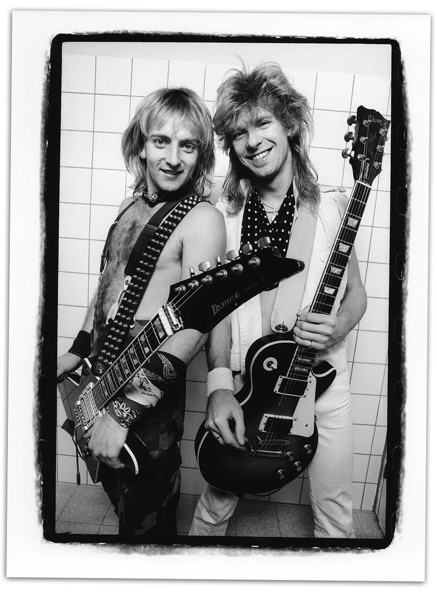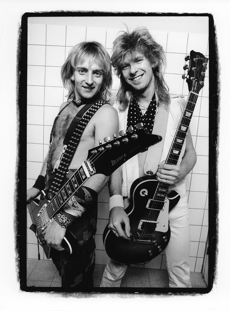 Terror Twins Phil and Steve are ready to start some fires on the 1983 Pyromania Tour. From the Collection of Def Leppard.