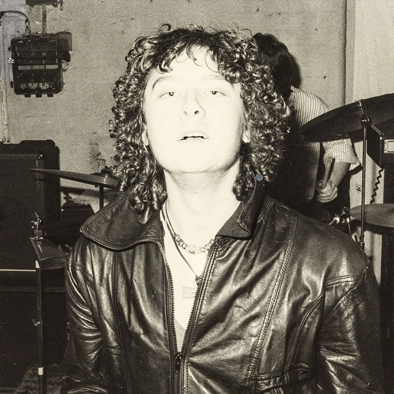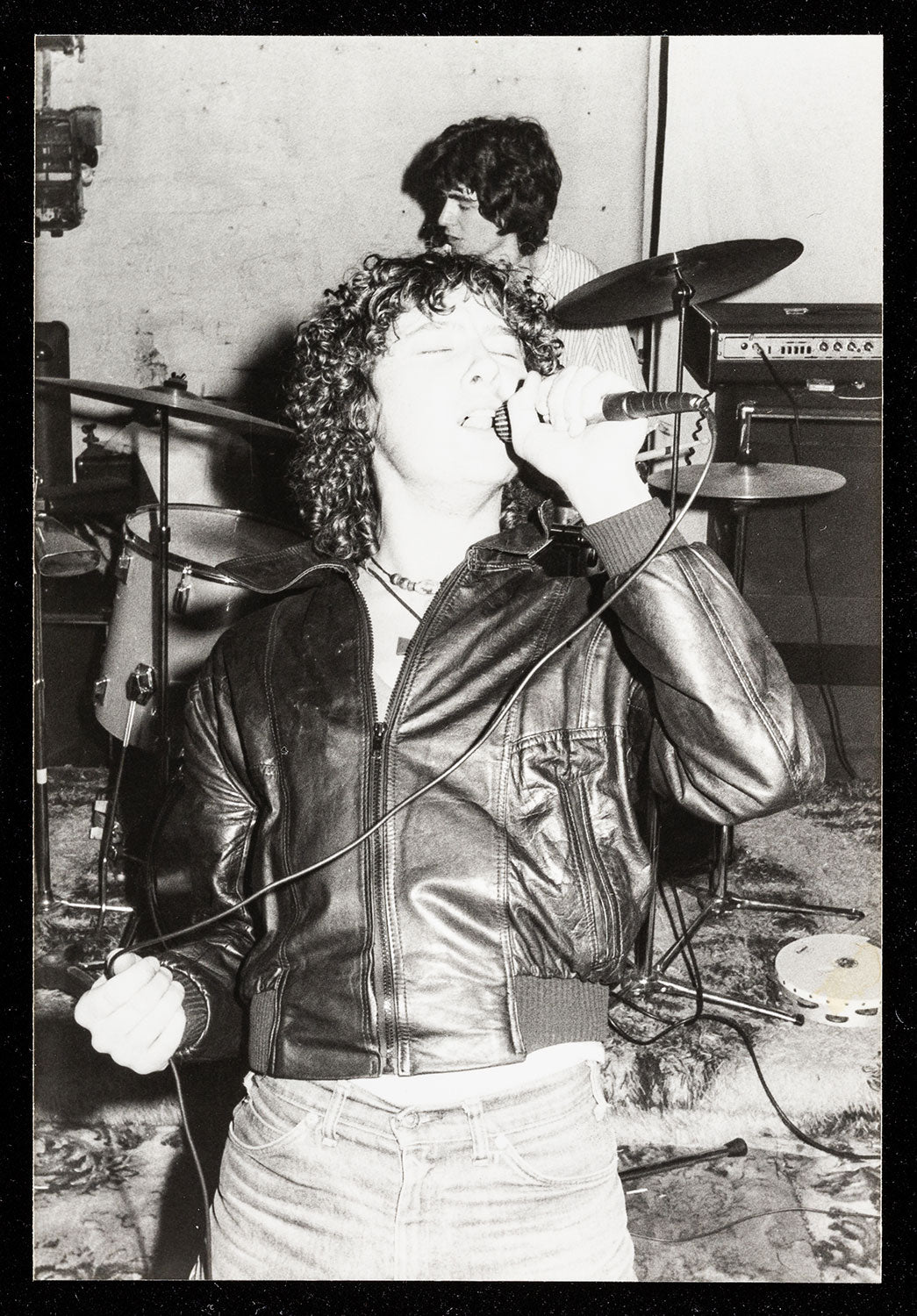 Rehearsal at the Spoon Factory, Sheffield, England, 1978. The warehouse was a "home away from home" for the young Leppards where they hung out with friends, wrote, rehearsed, and performed their first show. Sav is playing to Joe's left. Photo: John Wood. From the Collection of Joe Elliott.