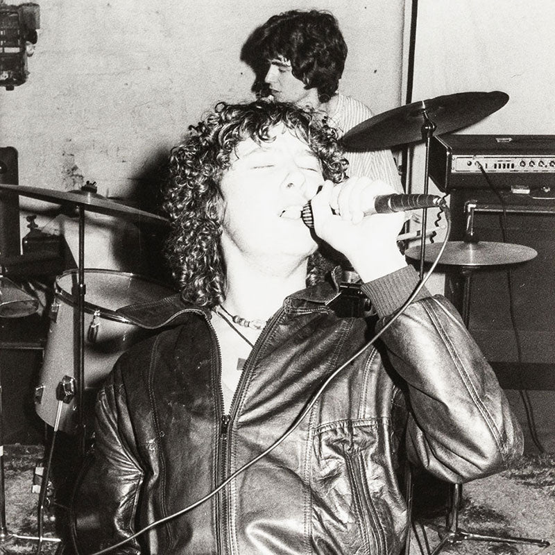 Joe sings in front of session drummer Frank Noon at the Spoon Factory, Sheffield, England, 1978. Photos from this session would later appear on the first pressing of The Def Leppard E.P. Photo: John Wood. From the Collection of Joe Elliott.