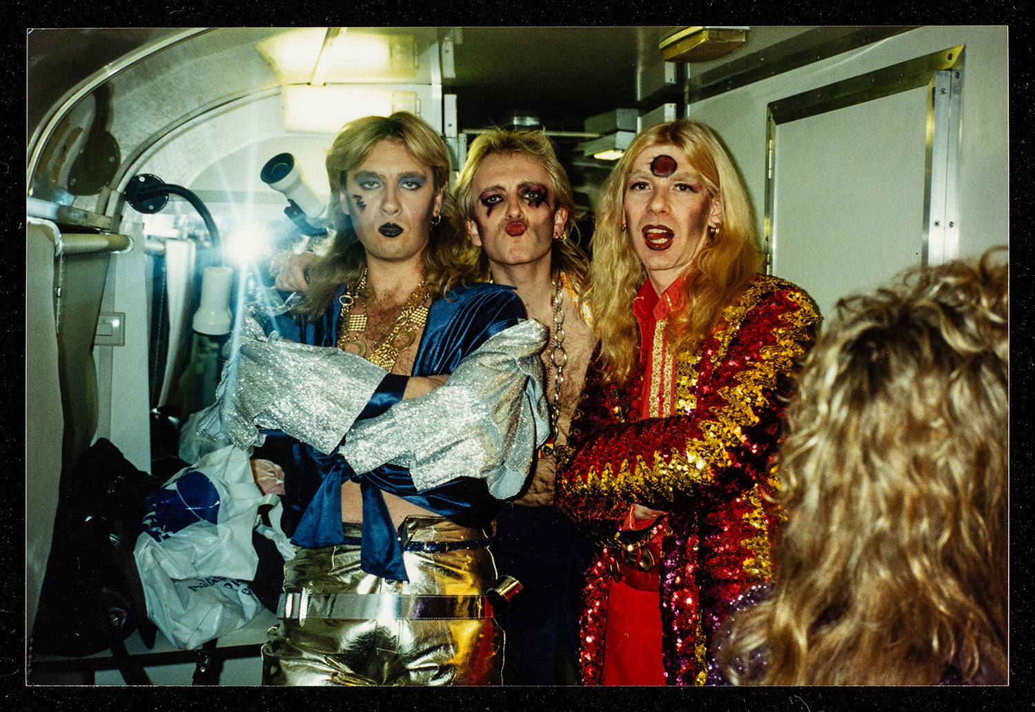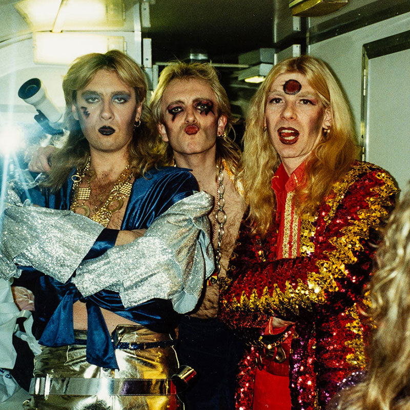 Joe, Phil, and Steve in glam costume for the "Rocket" video, November 1988. From the Collection of Joe Elliott.