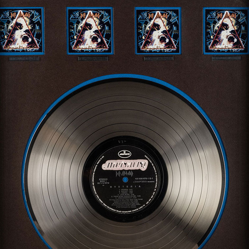 RIAA plaque presented to Joe Elliott in May 1990, to commemorate Hysteria selling ten million albums in the US. From the Collection of Joe Elliott.