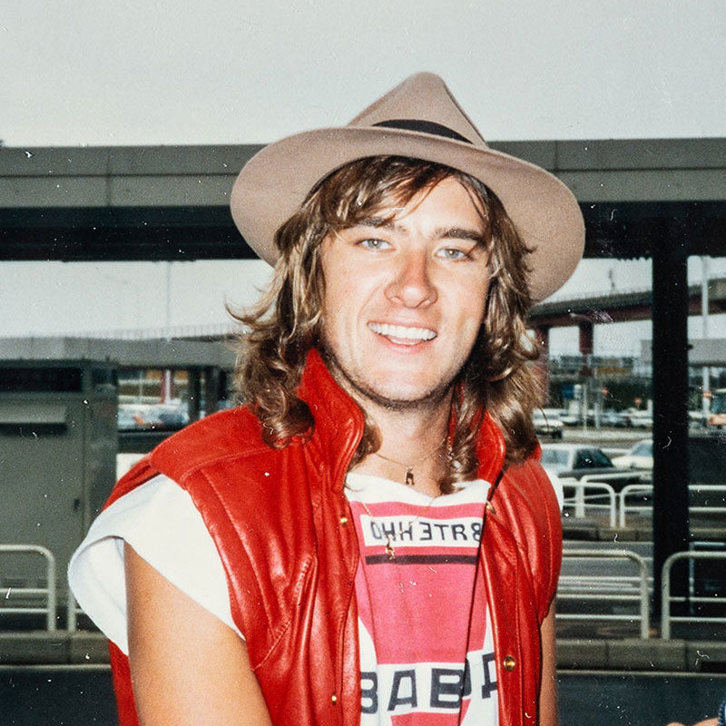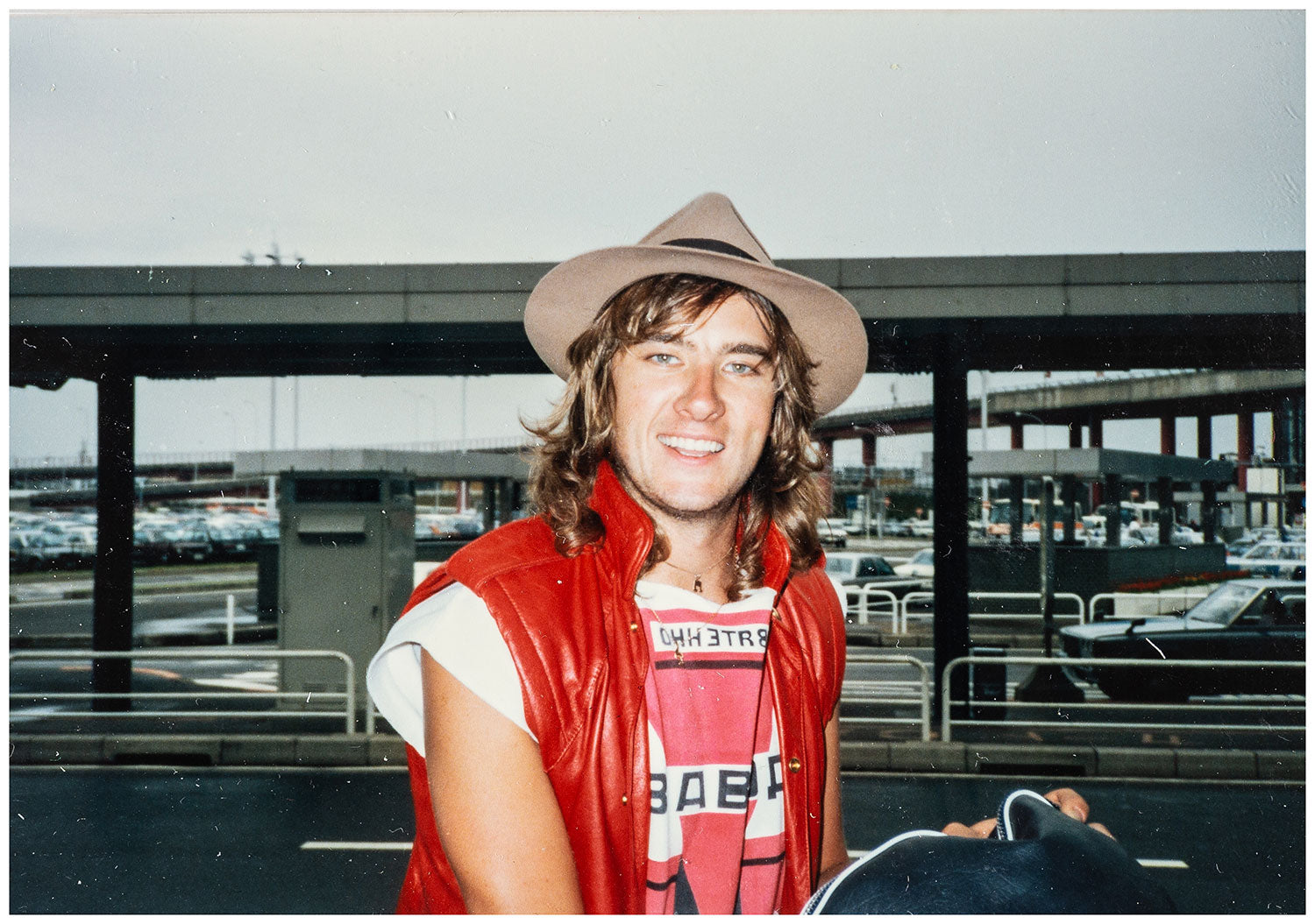 Joe arrives in Japan for the first time, Narita International Airport, 26 September 1983. He and Phil were traveling with manager Cliff Burnstein to promote Pyromania and Def Leppard's upcoming tour of the region. From the Collection of Joe Elliott.