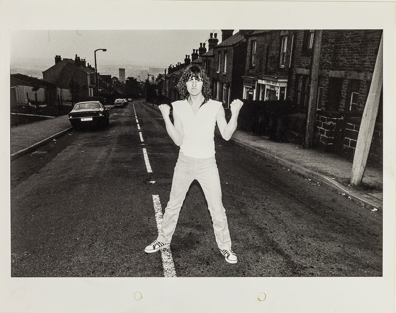Joe stands in a Sheffield street, 1979. Photo: Ross Halfin. From the Collection of Joe Elliott