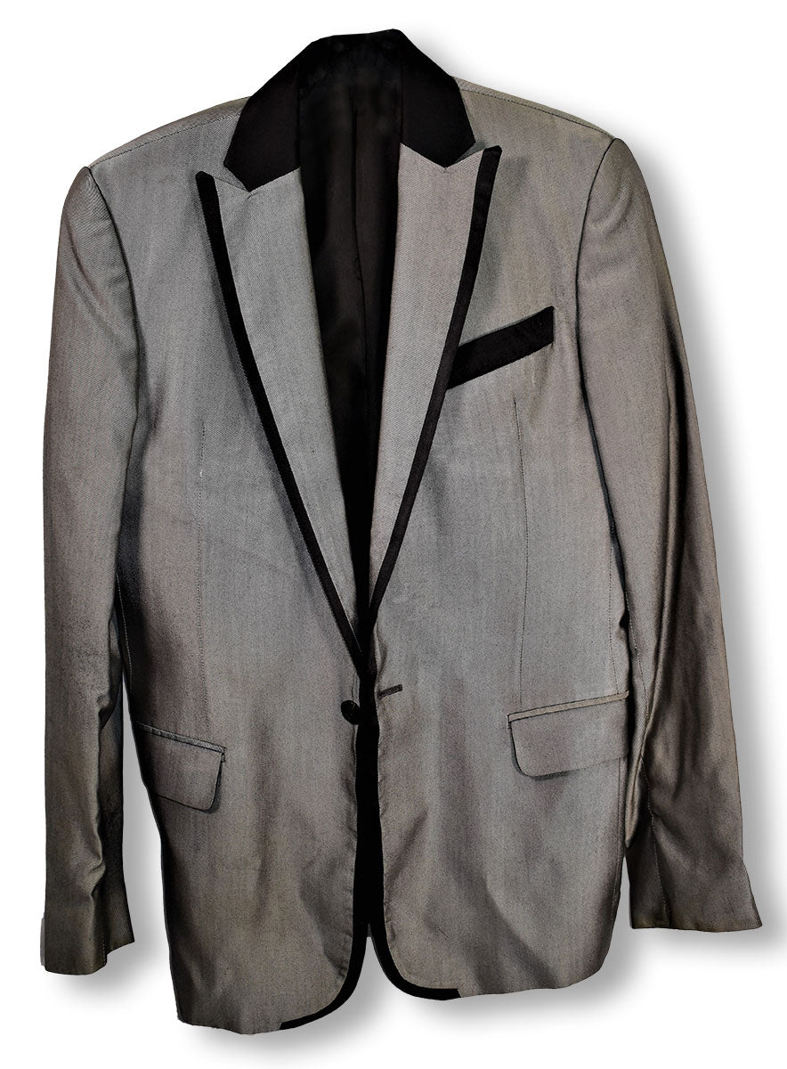 Joe's super-frayed patchwork-style trench worn at the 1992 MTV VMA Awards. This Aardvark Apparel 3/4 length coat has been through some adventures. Note the well-worn robe-style belt, and the significant burn hole straight through on the back close to the hem. Pyromania, anyone? From the Joe Elliott collection.