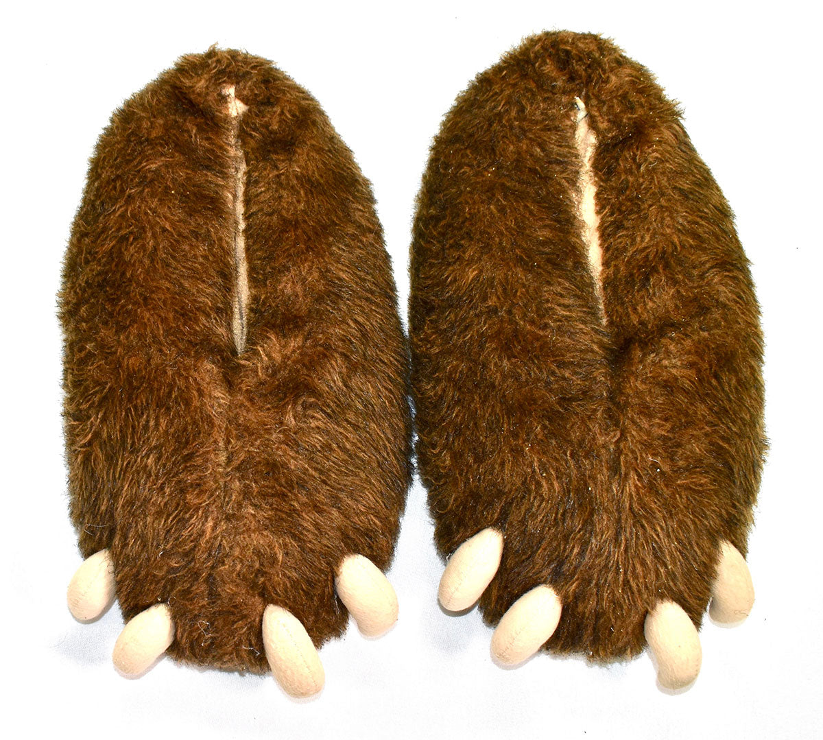 Not your average slippers, these are Joe Elliott's very own personal pair of bears worn throughout the HYSTERIA Tour. These brown fuzzy bear claw slippers were at-the-ready backstage to soothe tired frontman feet. The soles show significant wear, but the claws are still sharp. A legendary piece of Def Leppard costume history.