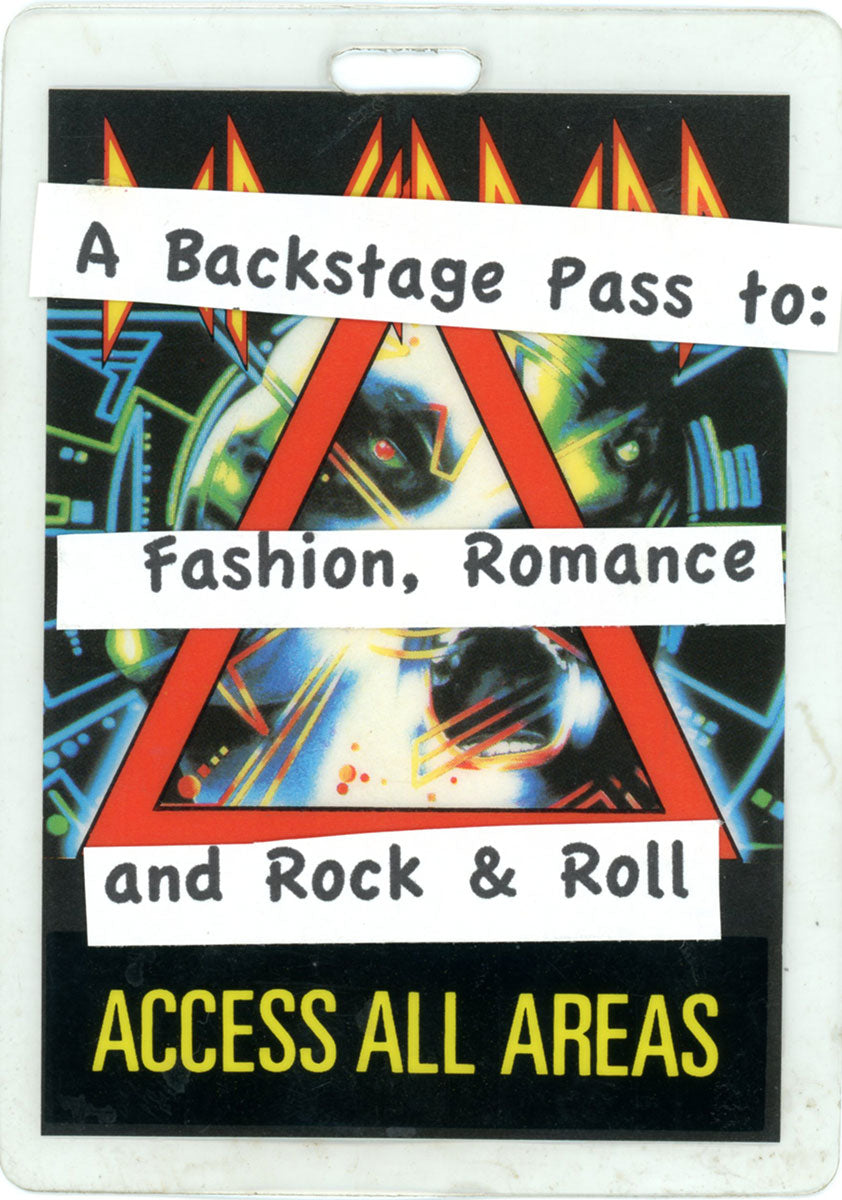 I'm With the Band! This All-Access laminate pass for the Hysteria tour belonged to Lorelei Shellist. She went on to use this very pass on the cover of her book "Runway Runaway: A Backstage Pass to Fashion, Romance, and Rock 'n Roll." Courtesy of the Lorelei Shellist Private Collection.