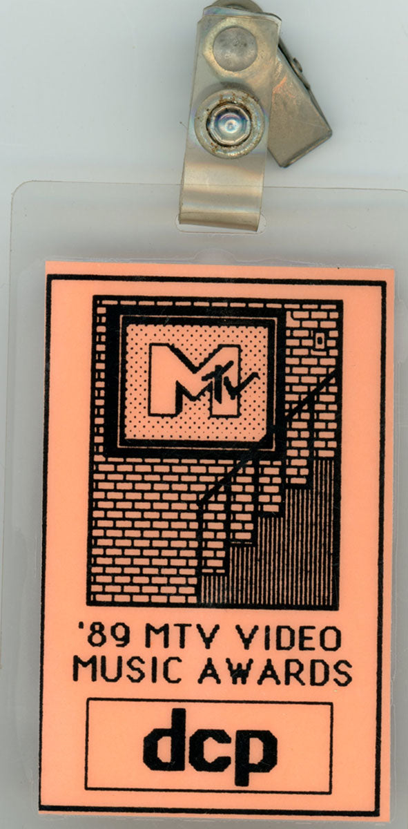 Steve Clark's laminate all access pass from the MTV Video Music Awards in Los Angeles, 6th September 1989. Def Leppard were up for two awards that night - Best Heavy Metal Video and Best Stage Performance in a Video - both for "Pour Some Sugar On Me." Instead of going with the expected, the band tore it up with "Tear It Down." This performance marks the last time Steve Clark would appear on stage with Def Leppard before his passing in January, 1991. From the collection of Lorelei Shellist.