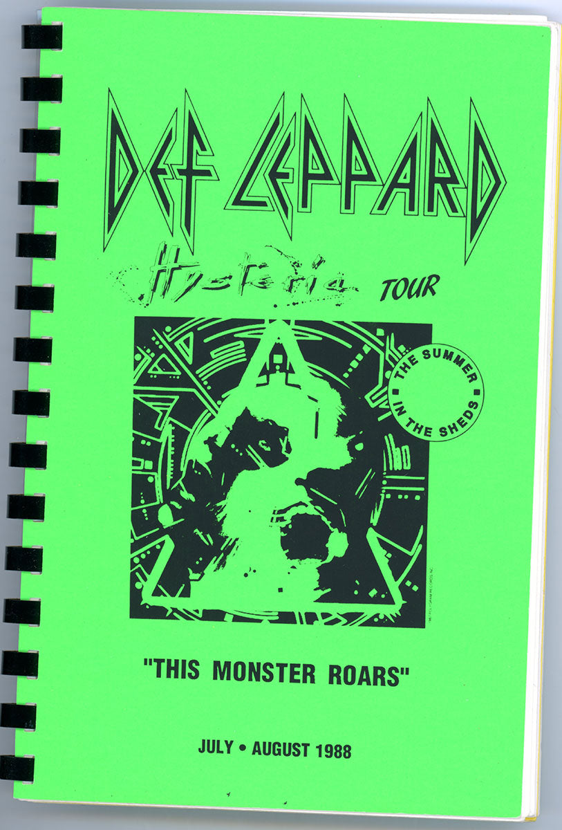This Monster Roars! Steve Clark's personal Tour Itinerary Book for the July and August 1988 dates of the epic, world-hopping, year-long adventure that was the Hysteria Tour. Now nicknamed "The Summer in the Sheds," this leg of the tour covered gigs in the USA and Canada. Here, you'll find dates, venues, sound check and performance times, travel routes, hotels, and days off - everything the band needed to know to get to the stage on time. Handwritten notes inside from Steve Clark and Lorelei Shellist include contacts, driving directions to the Irvine show, and flight information. It's an exciting snapshot of the band at a time when the Hysteria tour was firing on all cylinders. Courtesy of the Lorelei Shellist Private Collection.