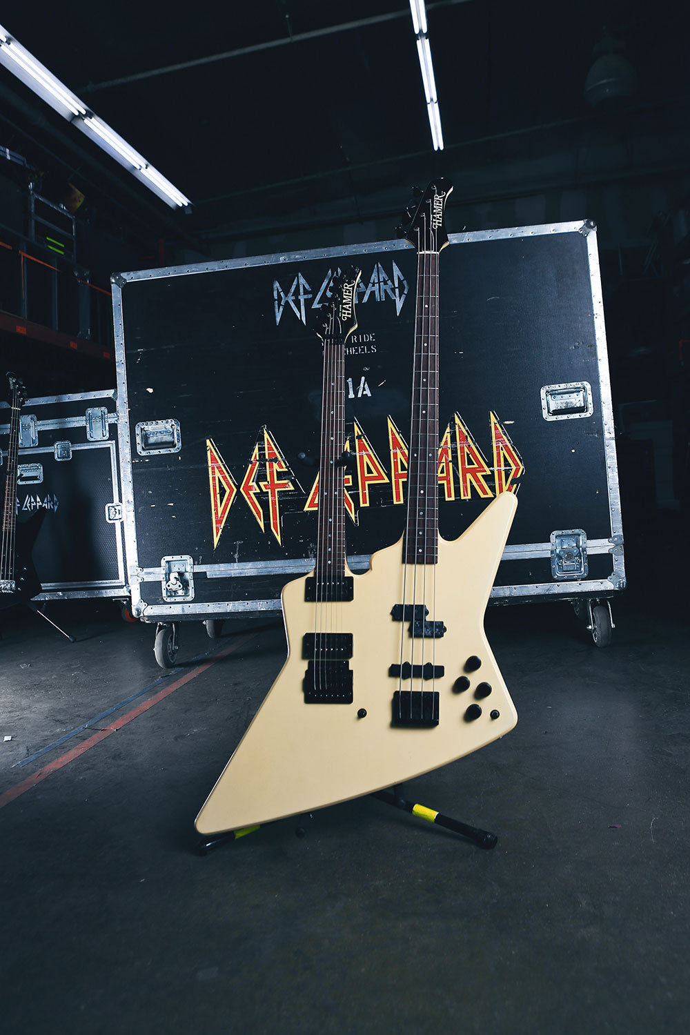 Hamer “Blitz” double neck 4 string bass / 6 string guitar. It was originally used on "Die Hard The Hunter" and "Gods of War" during the Hysteria tour.