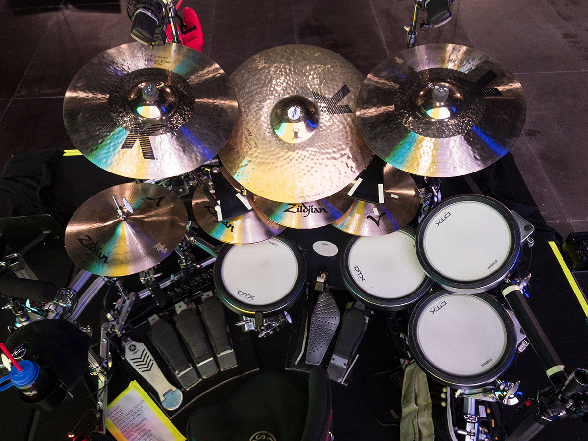 The classic Simmons kit with Zildjian cymbals. One last look before it was backup and sent off to a museum.