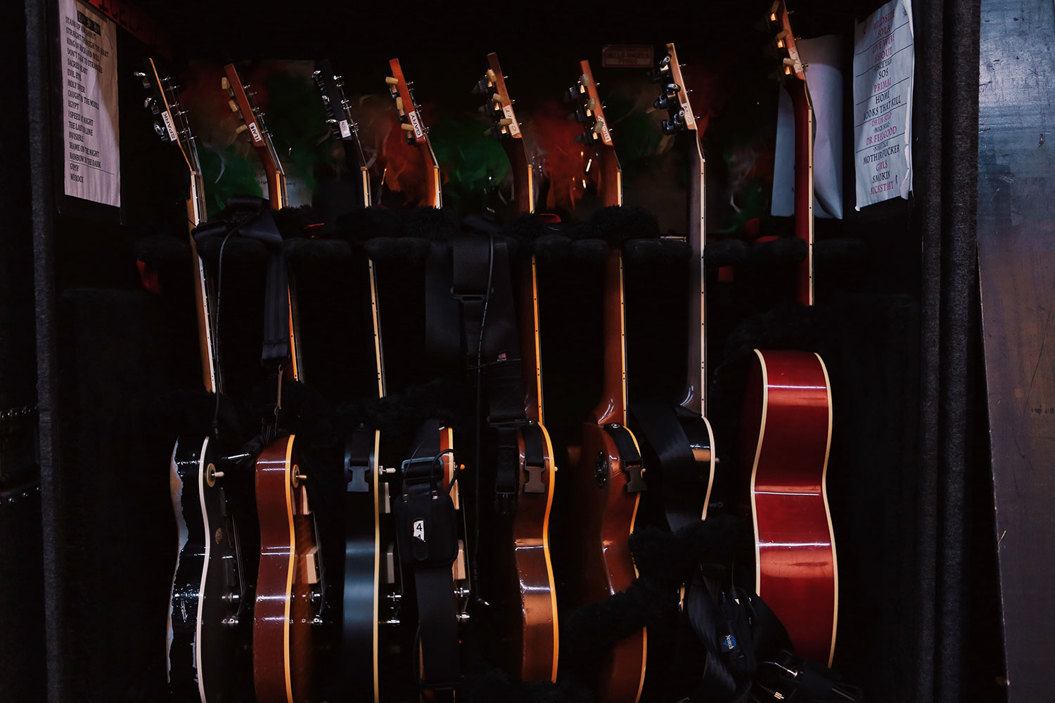 Phil with 3 of his classic guitars - Crackle, the Destroyer, and Bela. This was shot on the UK tour in the winter of 2018.