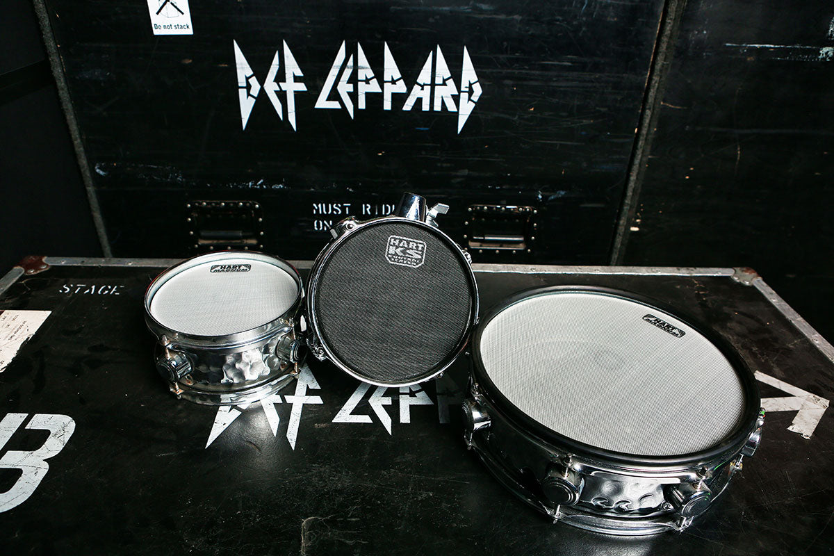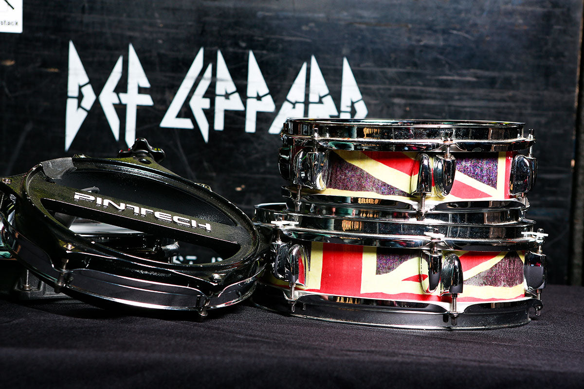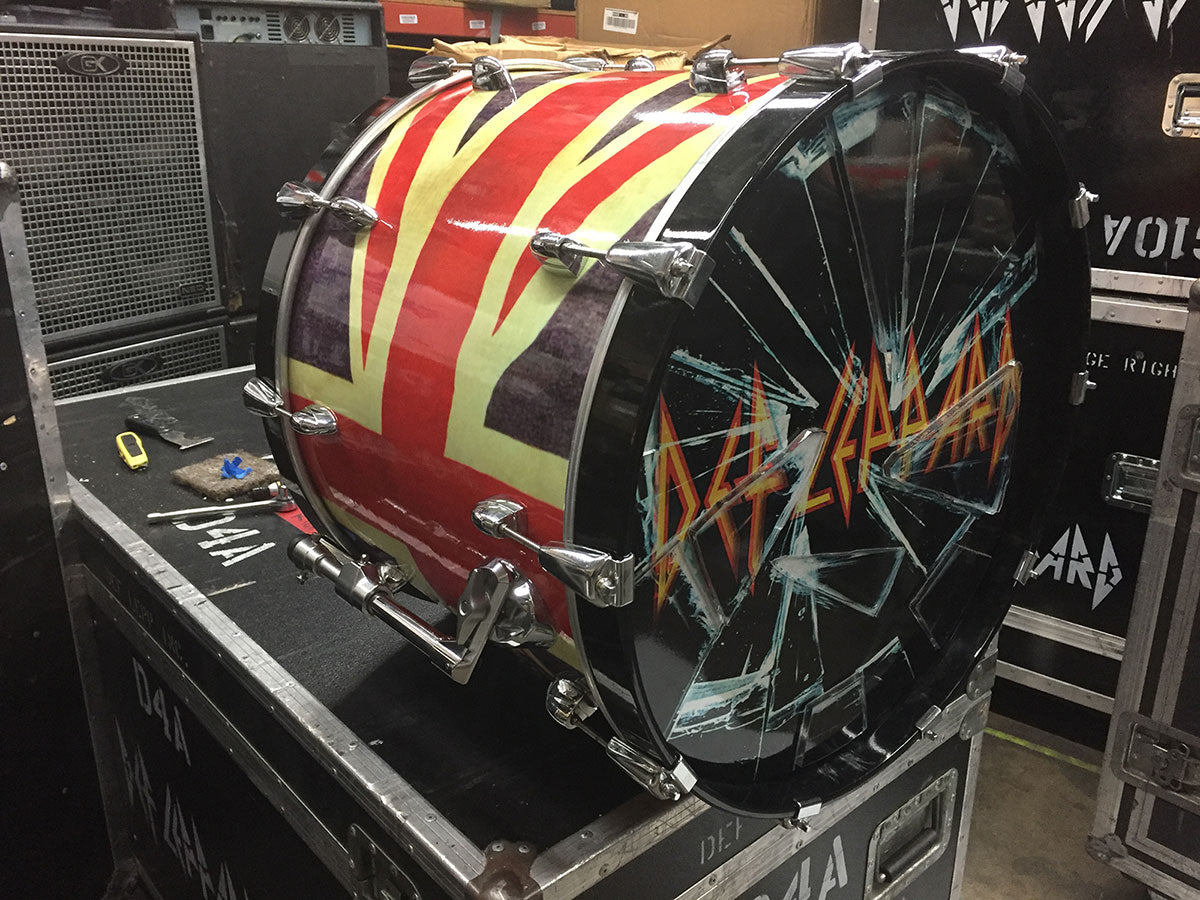 From the Seven Day Weekend tour (the tour behind the Adrenalize record) Rick had a long relationship with DW Drums and still has several of his old kick drums and snares in his studio.