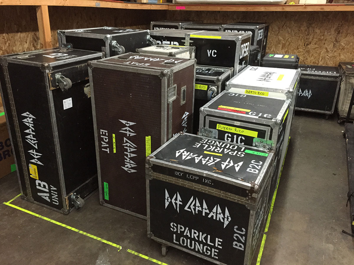 Like a lot of bands, Def Leppard has multiple touring rigs. To facilitate the 2015 world tour, the crew created a “fly rig”. The C Rig, as it is known, is a completely stripped down version of the A and B systems with the barest of minimums needed to pull off a show. Designed to fit into one airline shipping pallet, the kit always sits, taped off and ready to go at moment’s notice.