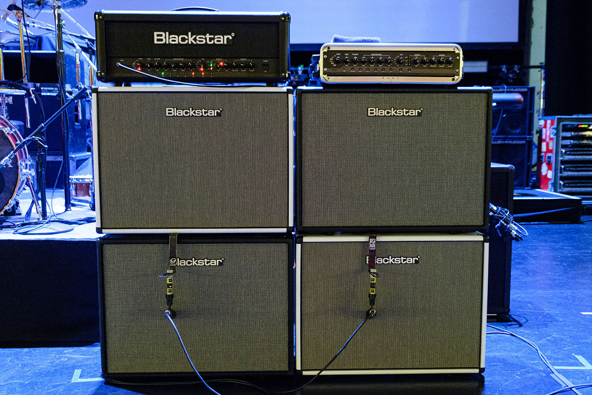 Most people think Rick is wearing headphones, but these are actually ear protectors that he wears over his in-ear monitors. Doing so provides extra insulation from stage noise and ensures that his mix stays consistent throughout the show.