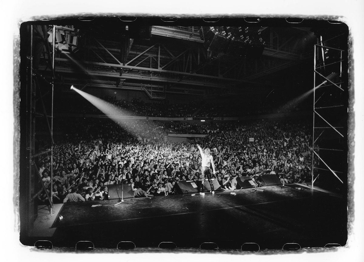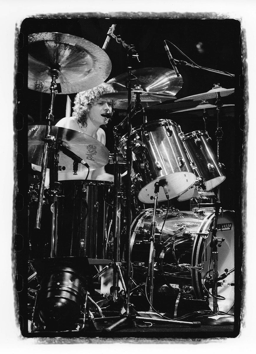 See it how Rick Allen saw it - a drummer's view of the 1983 Pyromania Tour, fame blasting off full-tilt, and a gig bursting with screaming, clapping, dancing fans. An incredible night captured forever in this glorious black and white photo print. Courtesy of the Lorelei Shellist Private Collection.