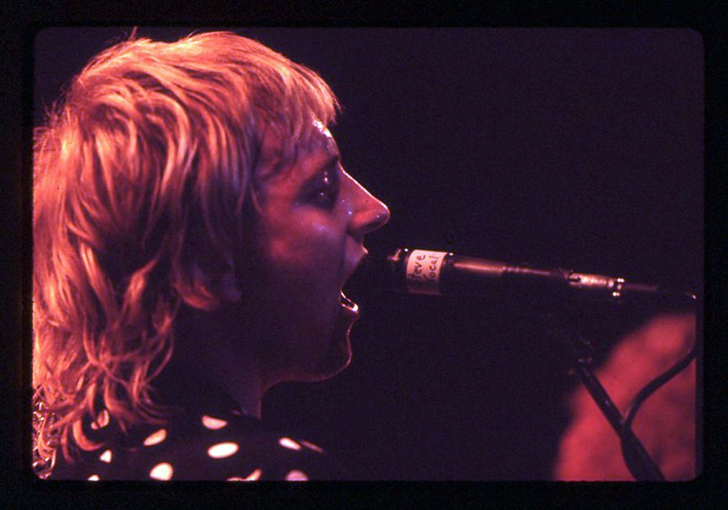 Phil sings back-up vocals on the Pyromania Tour, April 1983. Photo: Mark R. Swindler. From the Collection of Def Leppard.