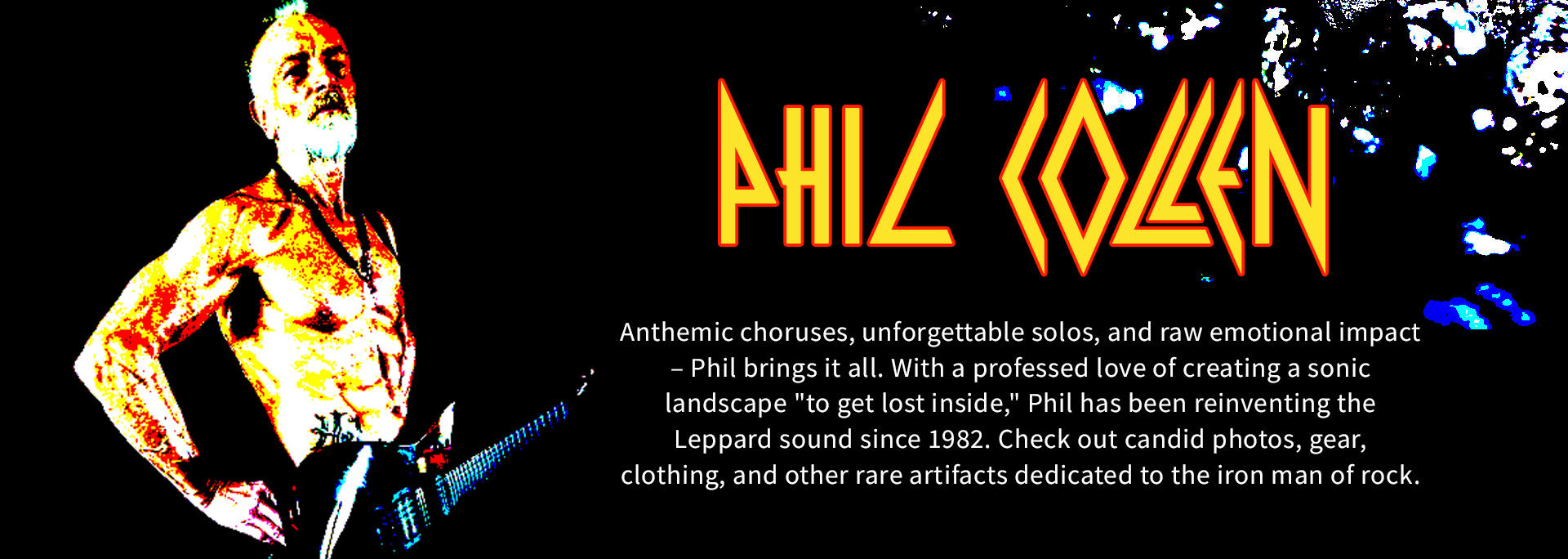 Phil plays his Jackson "Black Cracklejack" live on the Hysteria Tour, circa 1988. "This was definitely my main guitar for the Hysteria Tour and was featured in tons of Lepp videos. I think I got the guitar in '86...The finish was silver but basically covered in black and shrink-dried until the black cracked, giving it its unique finish. I love this guitar and brought it back out on the 2006 US tour with Journey, after about a fifteen-year hiatus. Oh, yeah, almost forgot, it has my name on the 24th fret." From the Collection of Def Leppard.