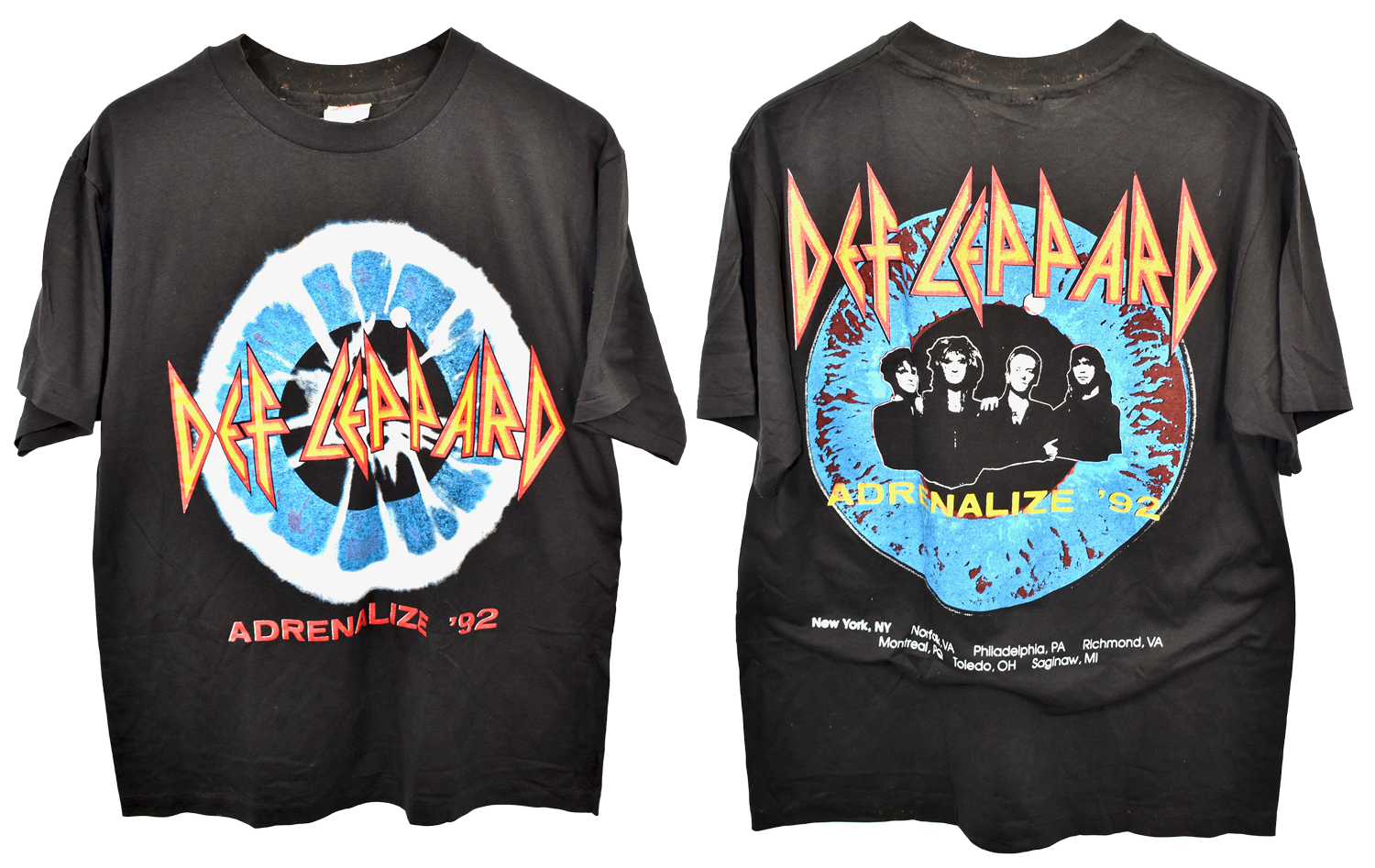 A t-shirt from the mysterious "Word Shirt" series, circa 1988, with the letters "DITDFD" on the front and an image of a US Billboard Top 200 Album Chart (with Hysteria in the top spot) on the back. The acronym "DITDFD" stands for "Dicks In The Dirt For Days". Joe recalls that this printing was likely done because "all the shows in the summer of ‘88 were sold out way in advance - to the point we were doing multiple nights in every city pretty much!" From the Collection of Def Leppard.