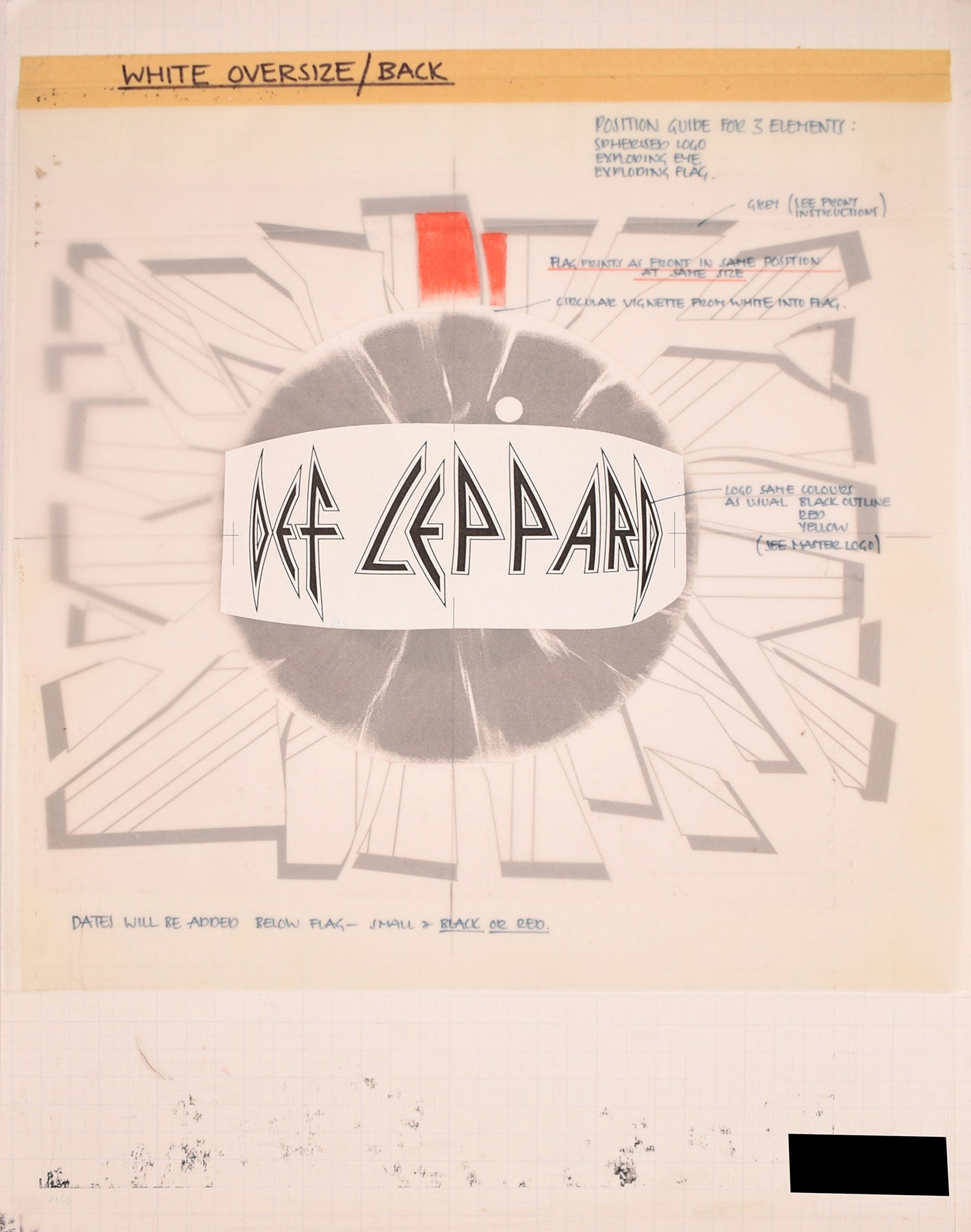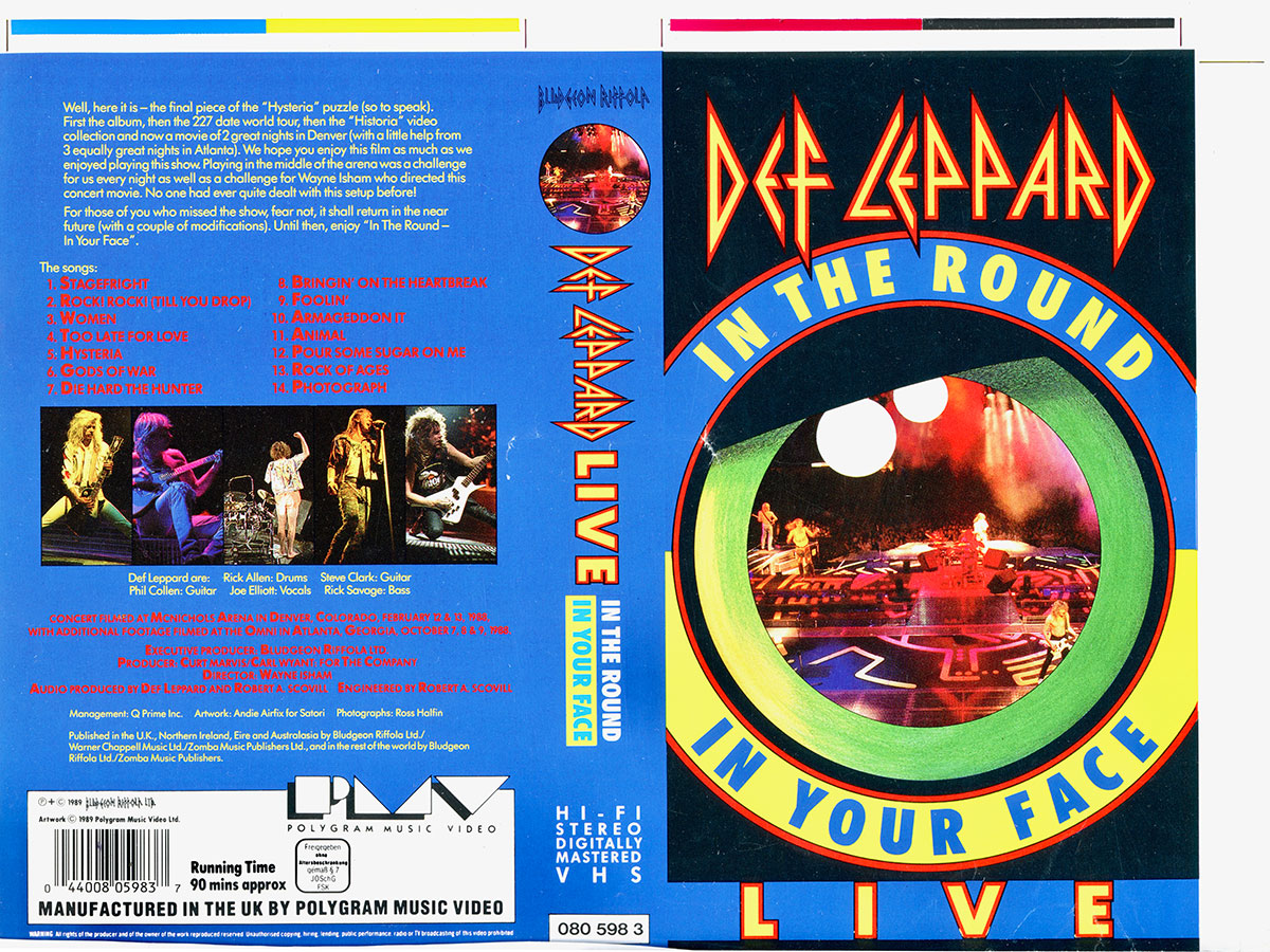 Print proof of the Def Leppard Live: In the Round, In Your Face VHS case art, released 7th March, 1989. From the Collection of Def Leppard.