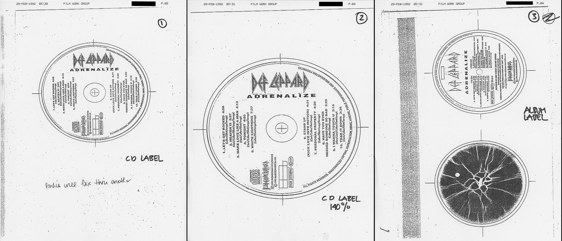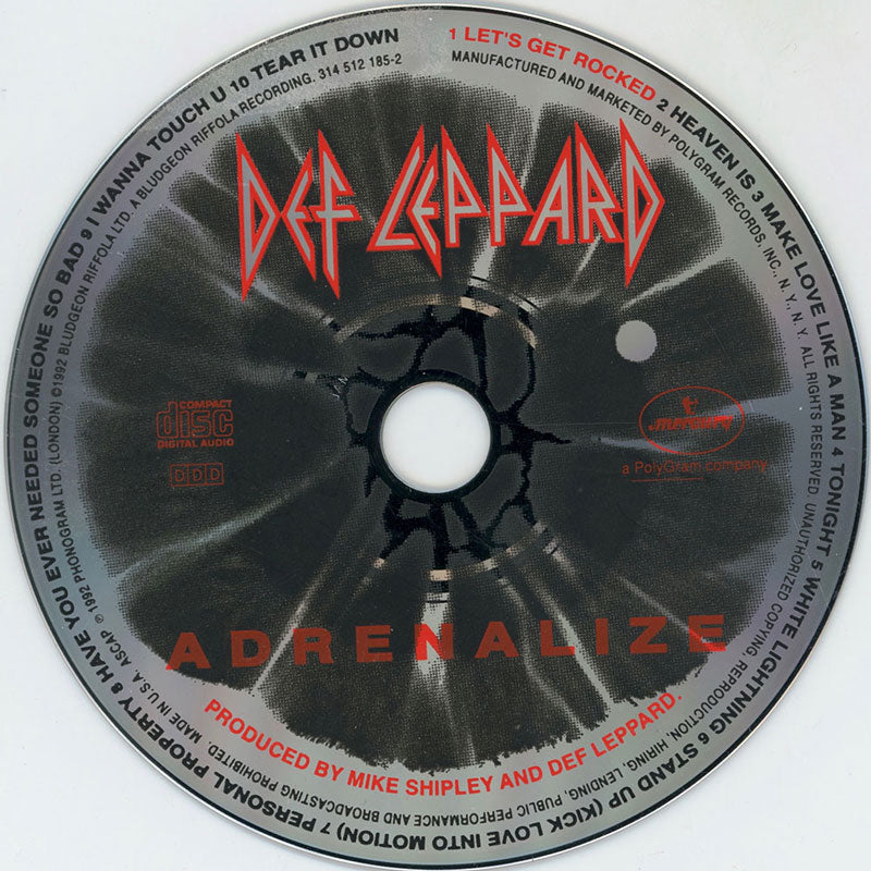 Adrenalize promotional sample CD featuring alternative art design by Andie Airfix, 1992. From the Collection of Def Leppard.