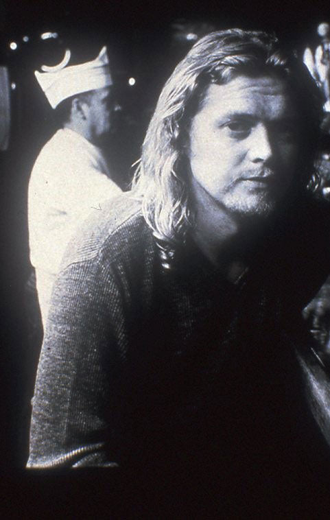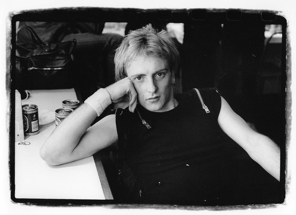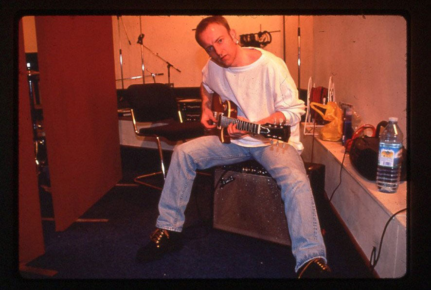 Rick in between takes of the Slang video, as directed by Nigel Dick, 1996. Photo: Ross Halfin. From the Collection of Def Leppard.
