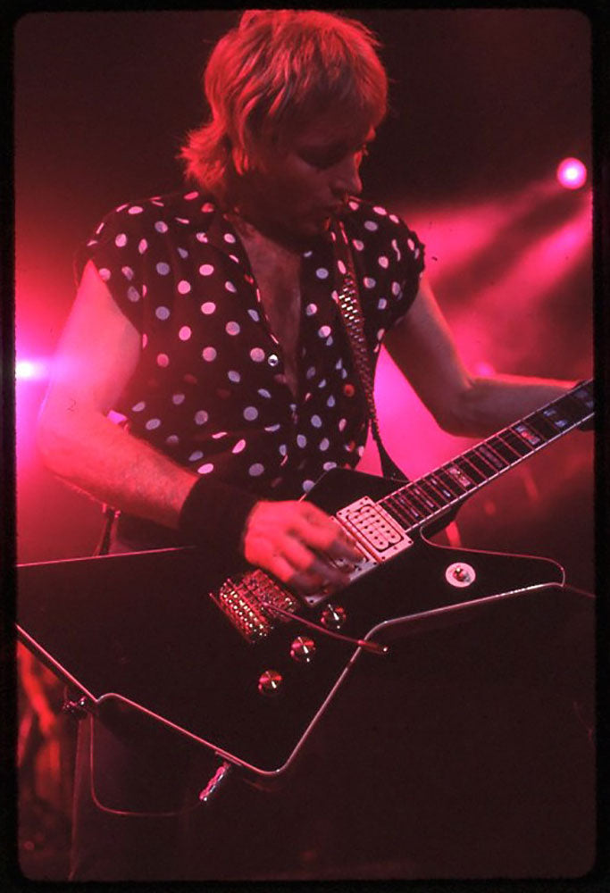 25 July 1981, Def Leppard played the final UK show of the High 'n' Dry World Tour at the Hammersmith Odeon, London, England. Special guests that night were More and Lionheart. Next stop was New Haven, Connecticut, to open for Ozzy Osbourne. From the Collection of Joe Elliott.