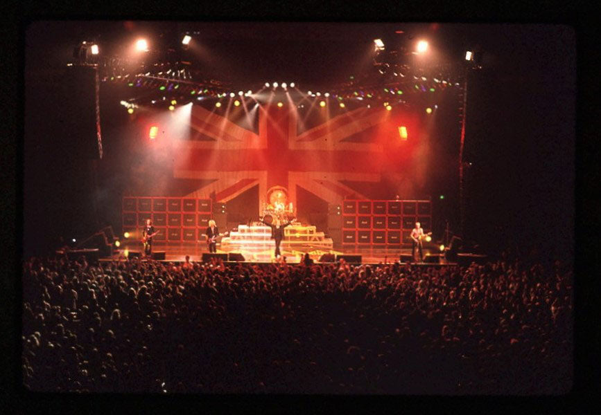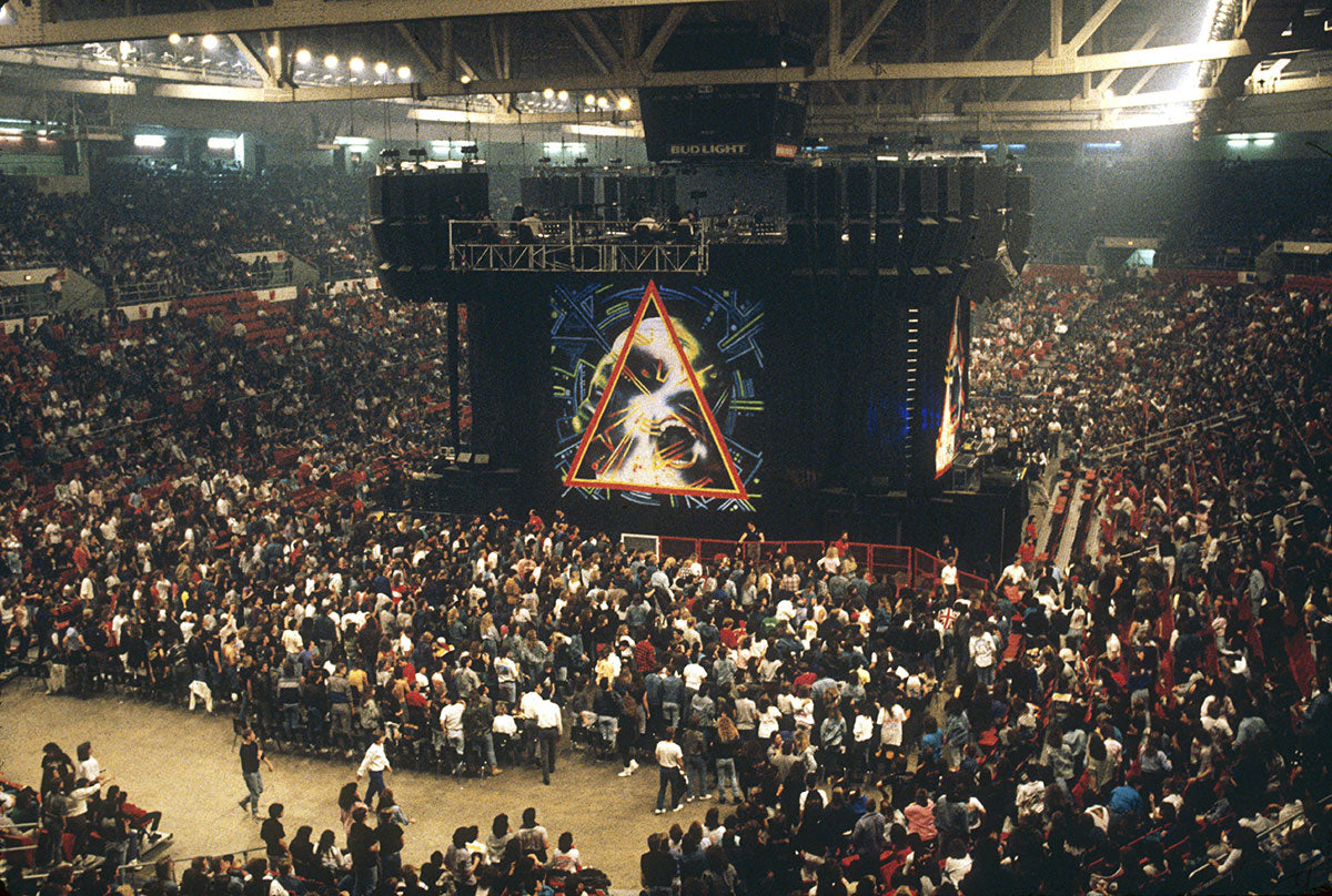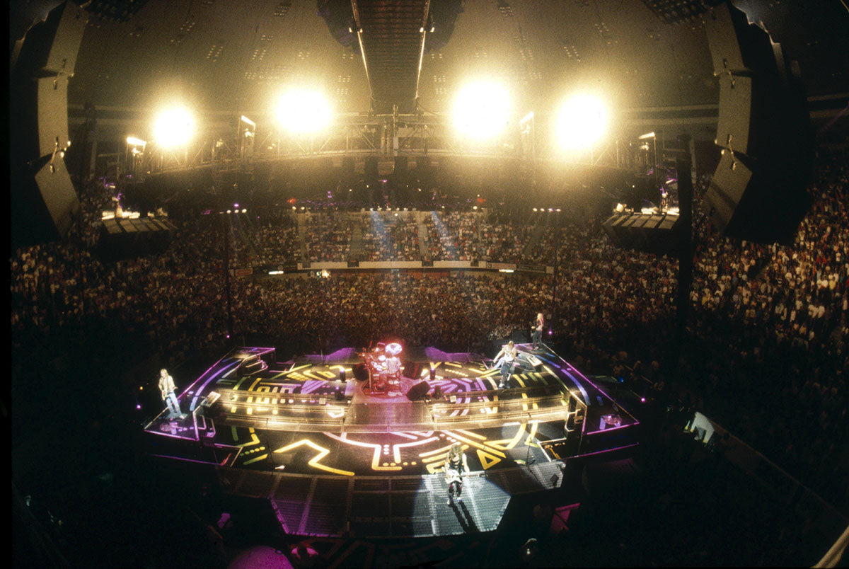 A full stage look at the in-the-round configuration from the Hysteria Tour, circa 1988. Photo: Ross Halfin. From the Collection of Def Leppard.