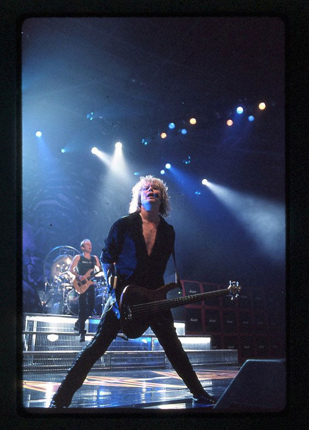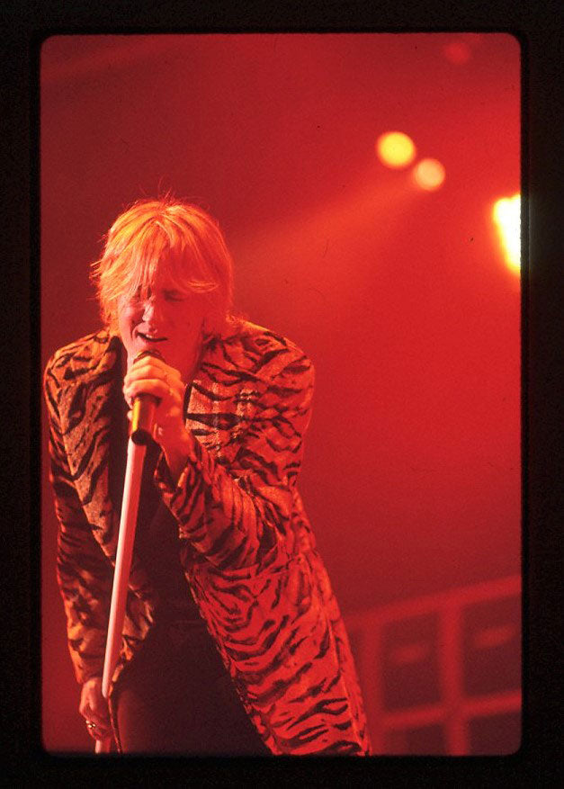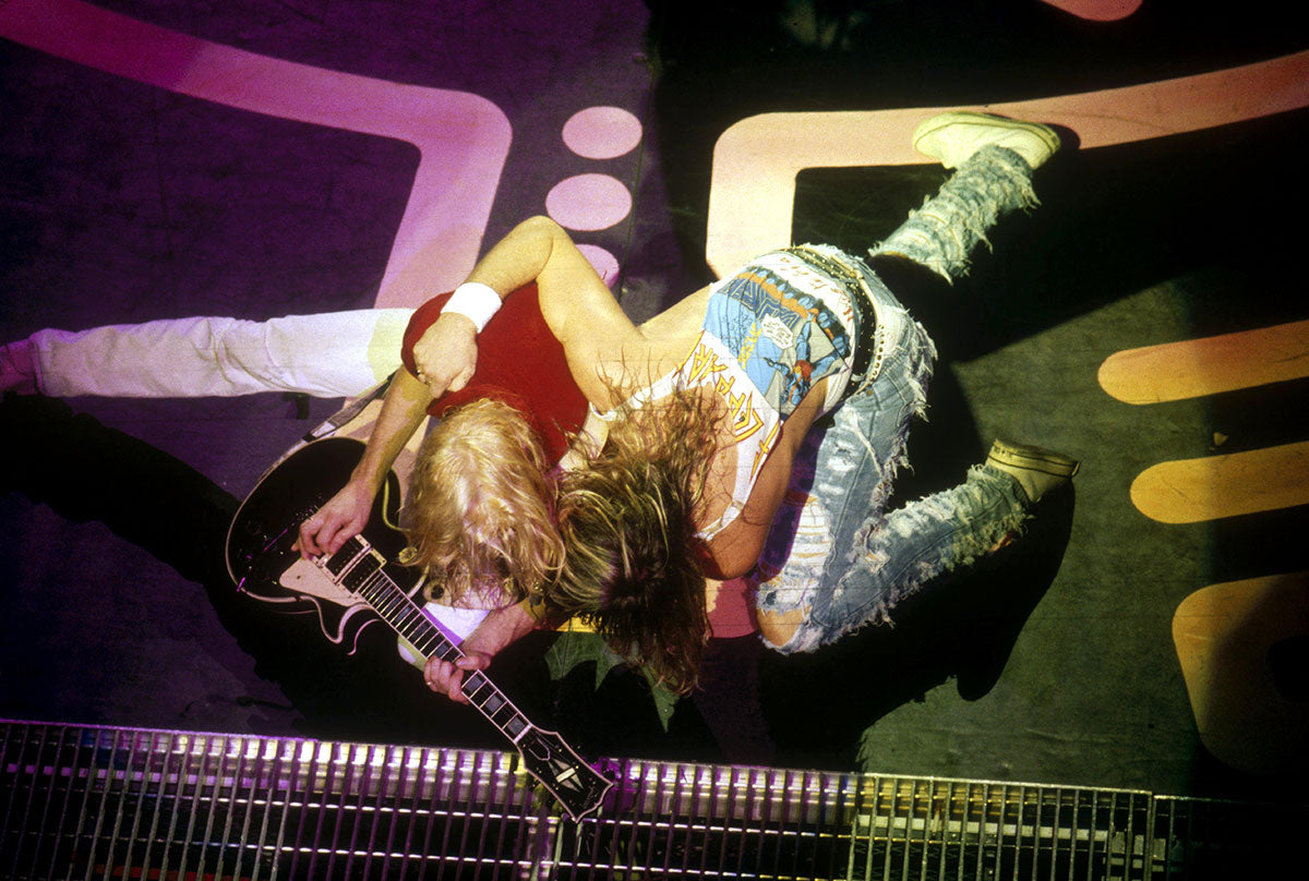 Viv takes the Adrenalize stage by storm in this live portrait from 1992. Photo: Ross Halfin. From the Collection of Def Leppard.