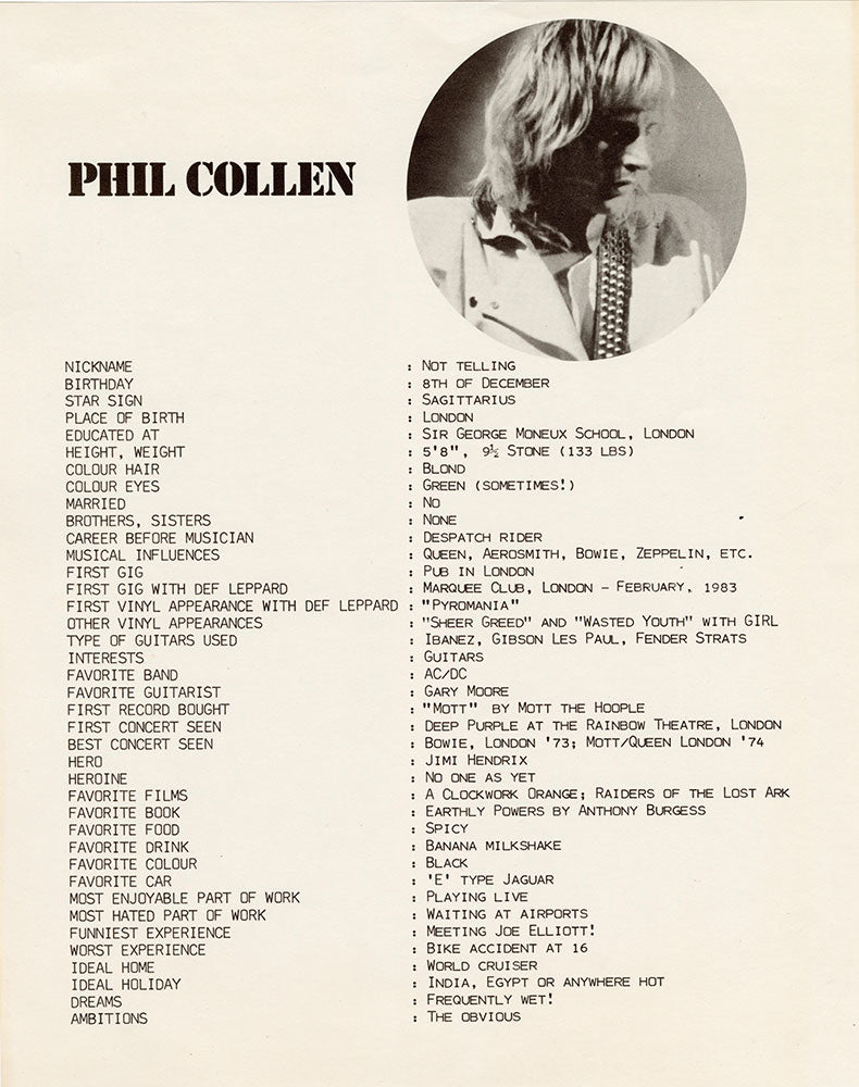 Signed by Joe Elliott, Phil Collen, Rick Savage, Rick Allen and Vivian Campbell.