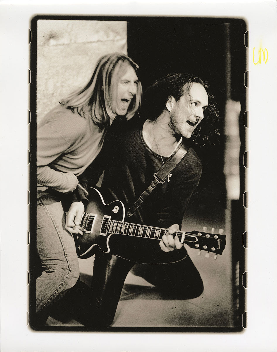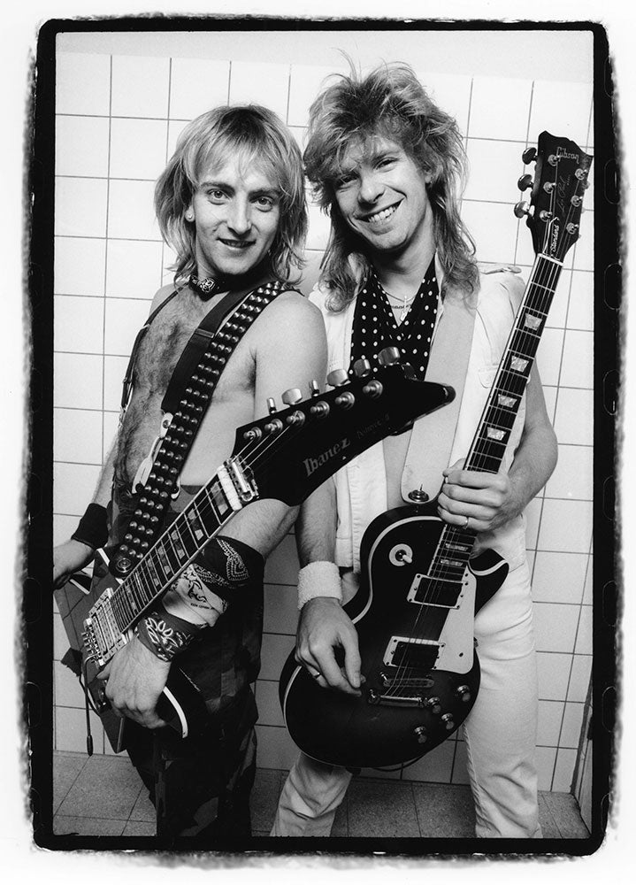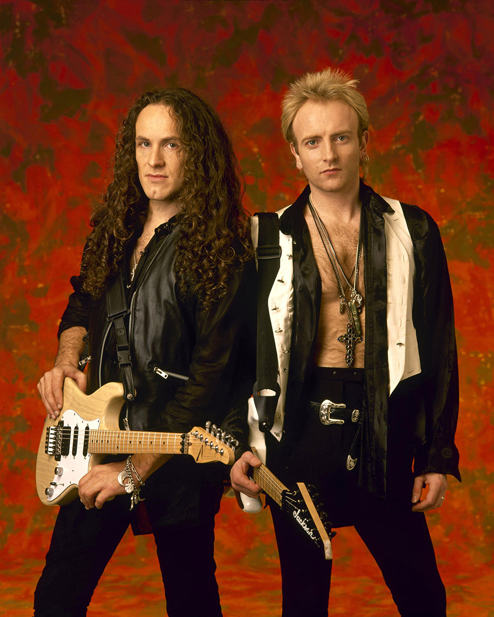 Viv and Phil stand side by side in this early portrait as Def Leppard's new power guitar line-up, 1992. Photo: Ross Halfin. From the Collection of Def Leppard.