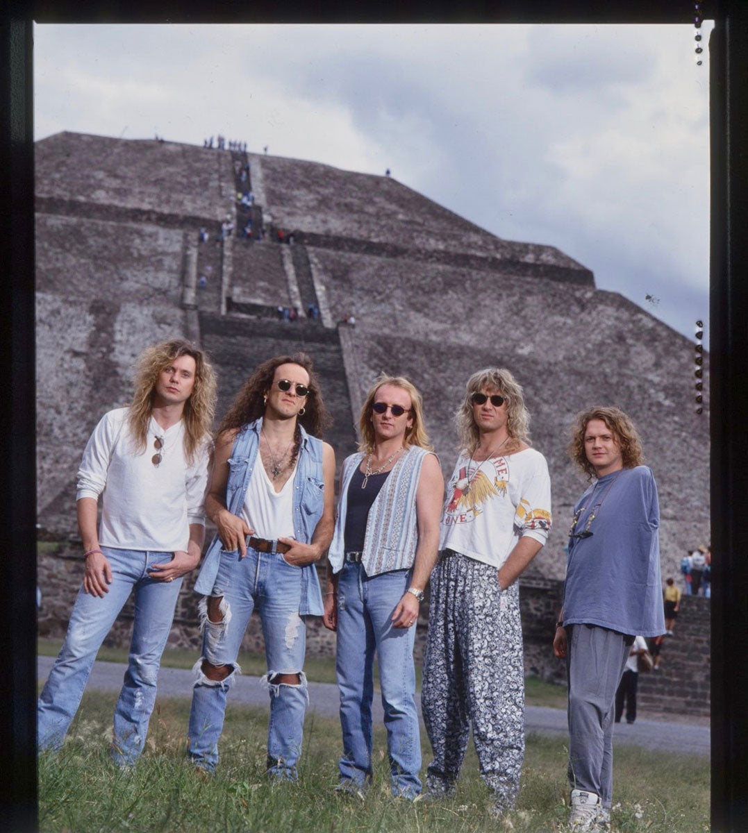 The last stop of the Adrenalize Tour was in Mexico City, Mexico, September 1993. What better way to cap off this blood-pumping 244-stop tour than a day trip with Sav, Viv, Phil, Joe, and Rick to the ancient pyramids of Teotihuacan? From the Collection of Def Leppard.