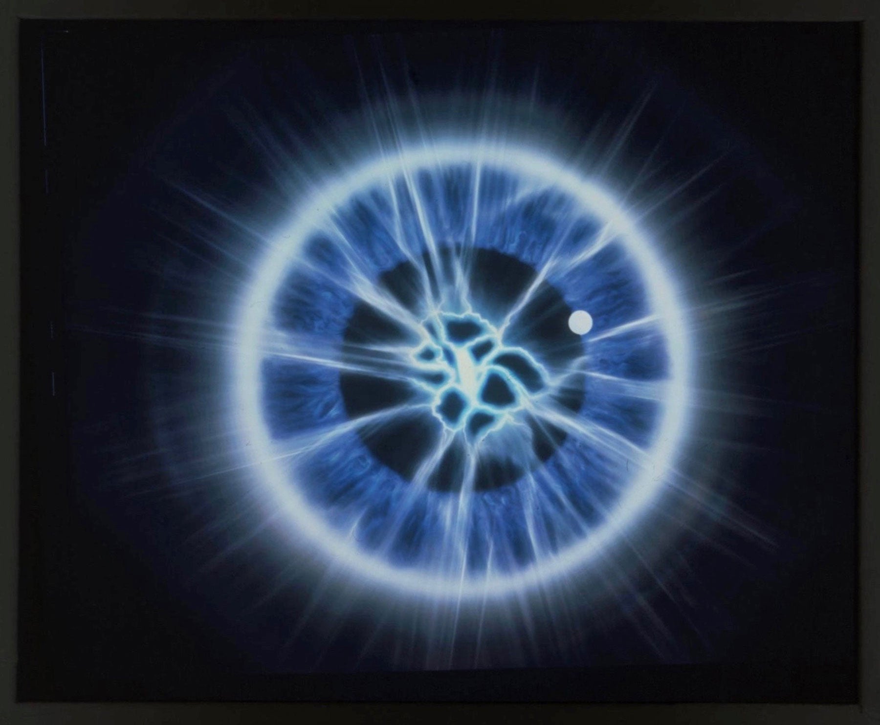 Creative director Ellen Wright-Martin had her team project Def Leppard videos over distressed mannequins for the Drastic Symphonies visualizers, 2022. Wright added, "We also used the footage taken at Abbey Road of the orchestra playing to add movement and to show the workings of making this album." This mannequin featured Union Jack flags painted on the eyelids. Courtesy of Ellen Wright-Martin.