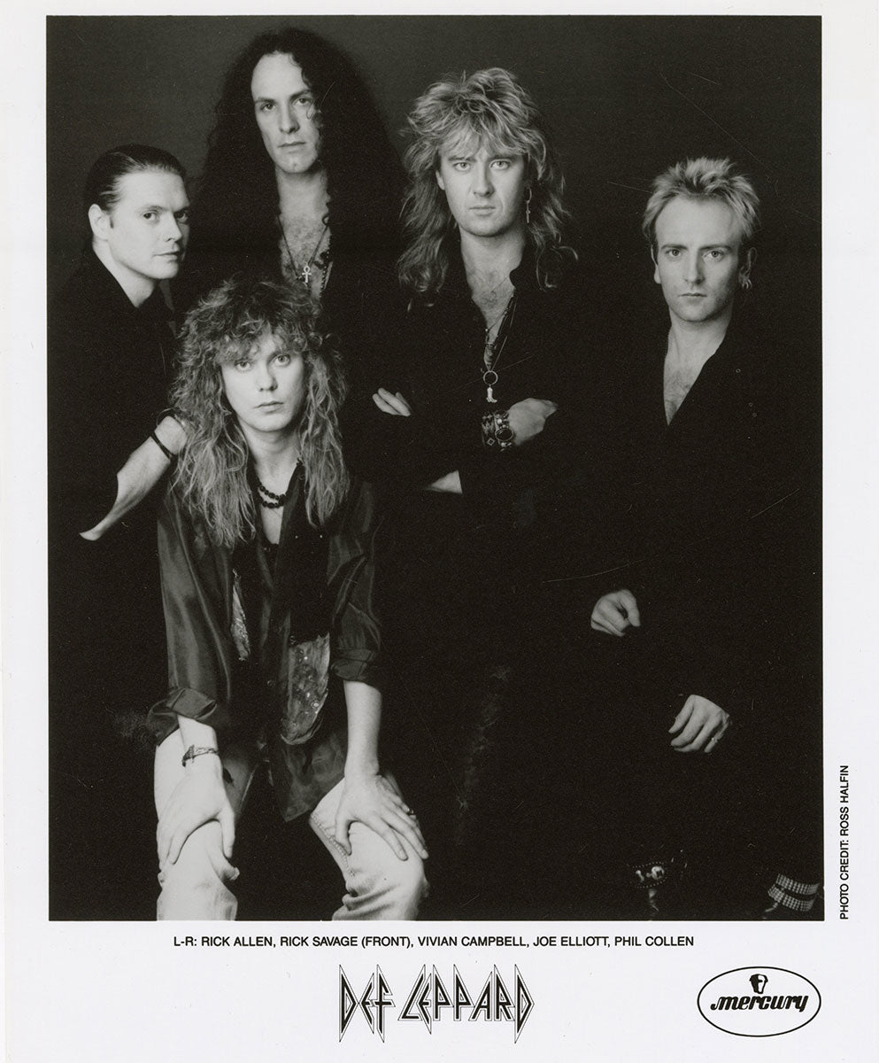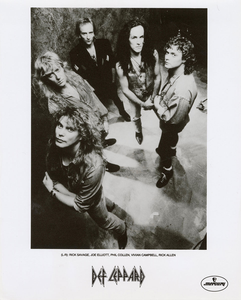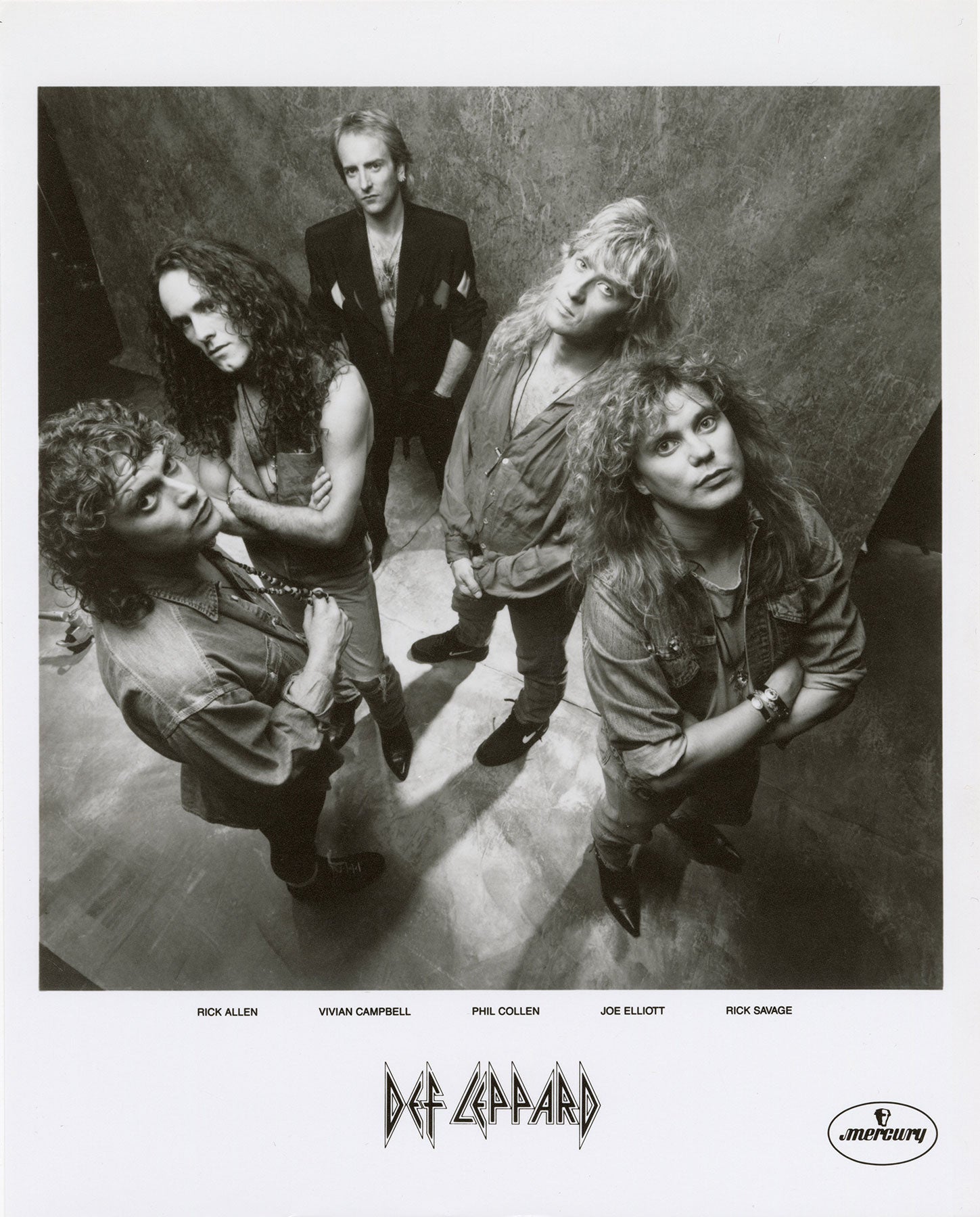Sav, Joe, Phil, Viv and Rick circle up for this Adrenalize-era Mercury Records promotional portrait, 1992. From the Collection of Def Leppard.