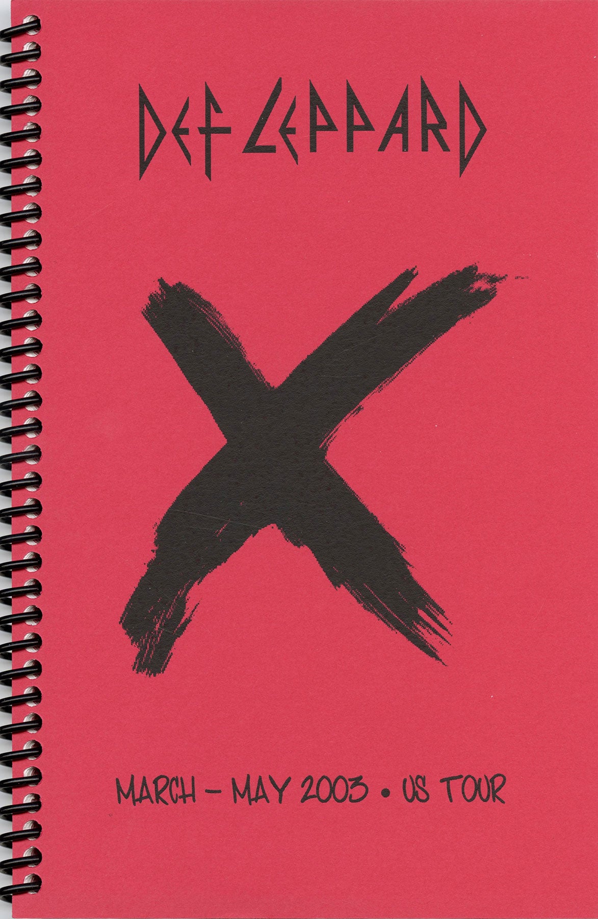 Tour itinerary book from the X Tour leg covering March through May 2003. Viv recalled the high-quality shows of this period: "The biggest buzz for me was that on the leg we played in North America in May and June, we were playing at our absolute best. I don't believe we can actually play any better than that." From the Collection of Def Leppard.