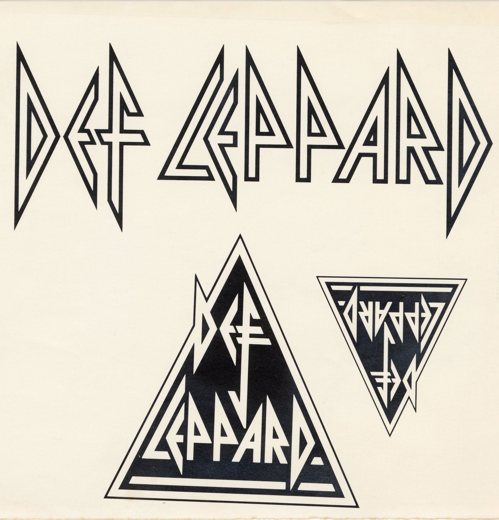 Early iterations of the Def Leppard logo, including versions incorporating a second stroke on the letter "f" and housed inside of a triangle. The first professional logo designed for the band was created by artist Alan Schmidt and used on the cover of On Through The Night. From the Collection of Def Leppard.