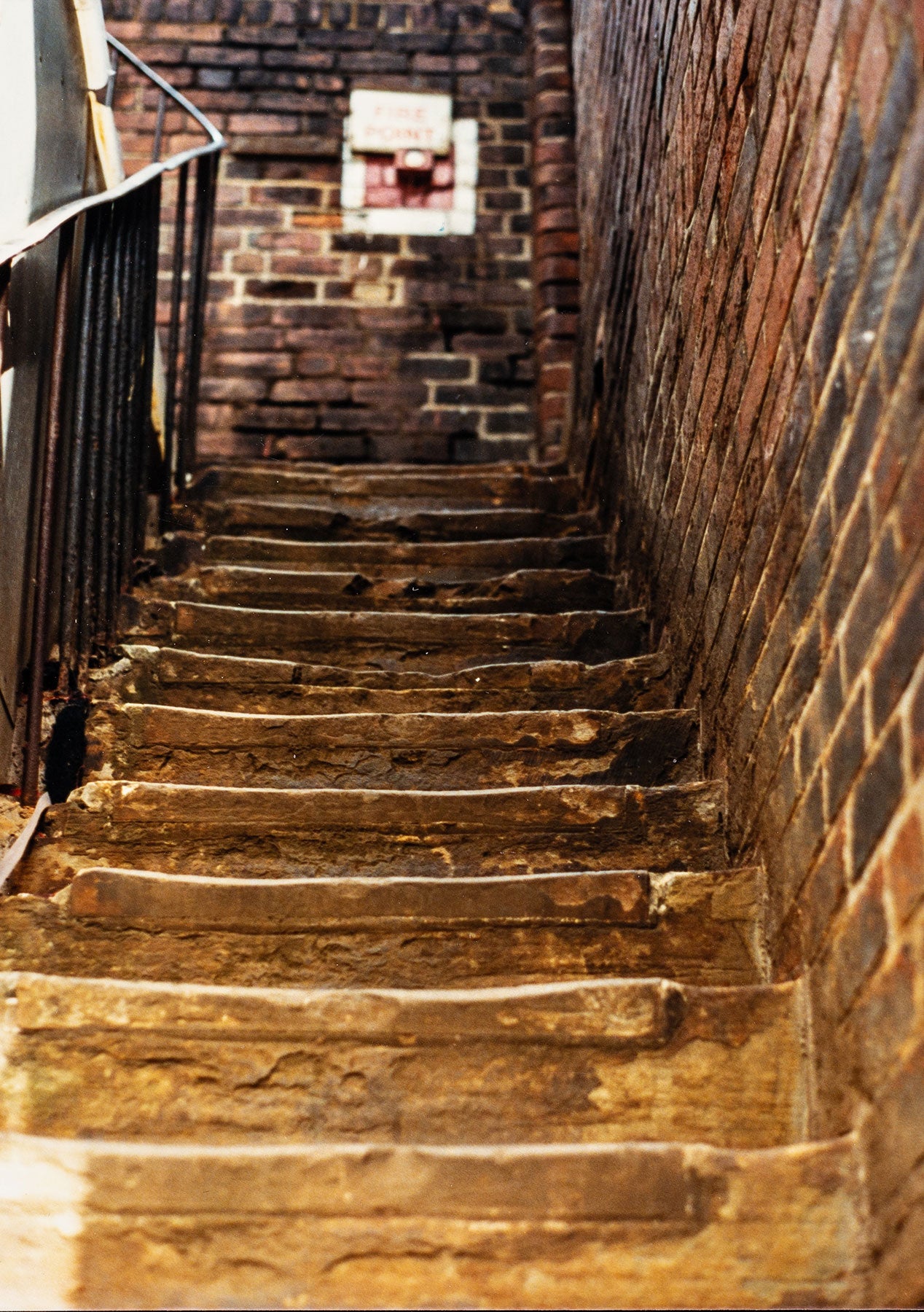 How many times did young Lepps climb these stairs toward a small rehearsal space inside a cutlery factory? Sav recalled: "We spent most of our lives in here when we weren't doing our day jobs." From the Collection of Joe Elliott.