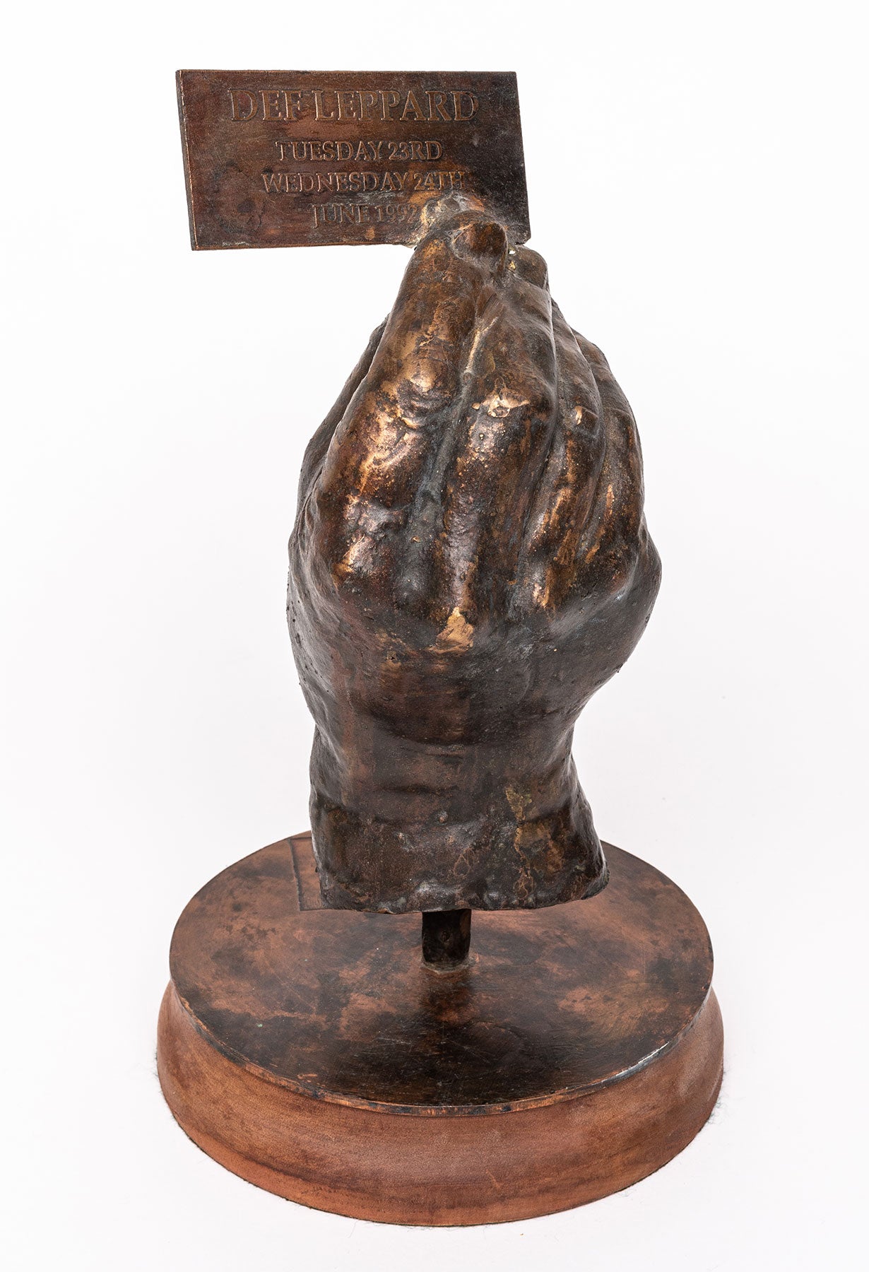 Statuette given to Def Leppard commemorating two packed homecoming shows at Sheffield Arena, 23 and 24 June 1992. From the Collection of Joe Elliott.