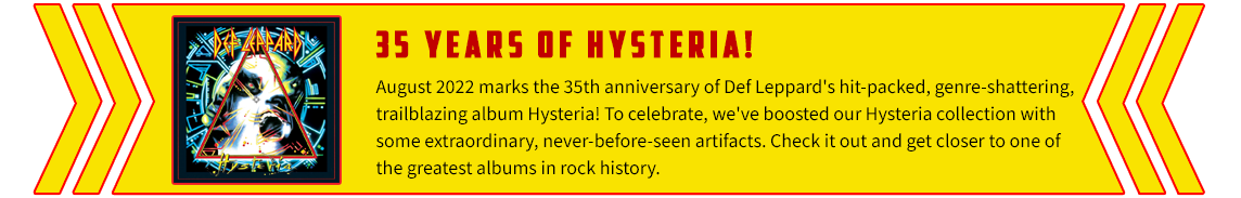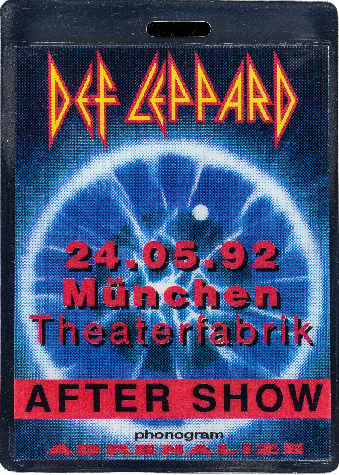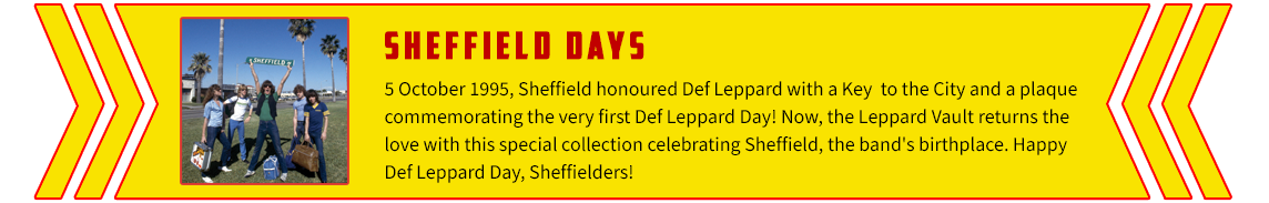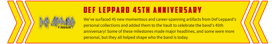 One of Def Leppard's proudest moments was their homecoming show at the Don Valley Stadium in Sheffield, England, 6 June 1993, to a crowd of nearly 50,000 fans. Rick Allen described the show: "I was pretty overwhelmed by the whole thing, I must admit. The fact that there were so many people that I knew in the audience or backstage, and they were all really rooting for us gave me a sense that we'd really sort of made it." The stadium commemorated this event with a wall display for Def Leppard featuring a plaque and framed photos in the lobby. From the Collection of Joe Elliott.