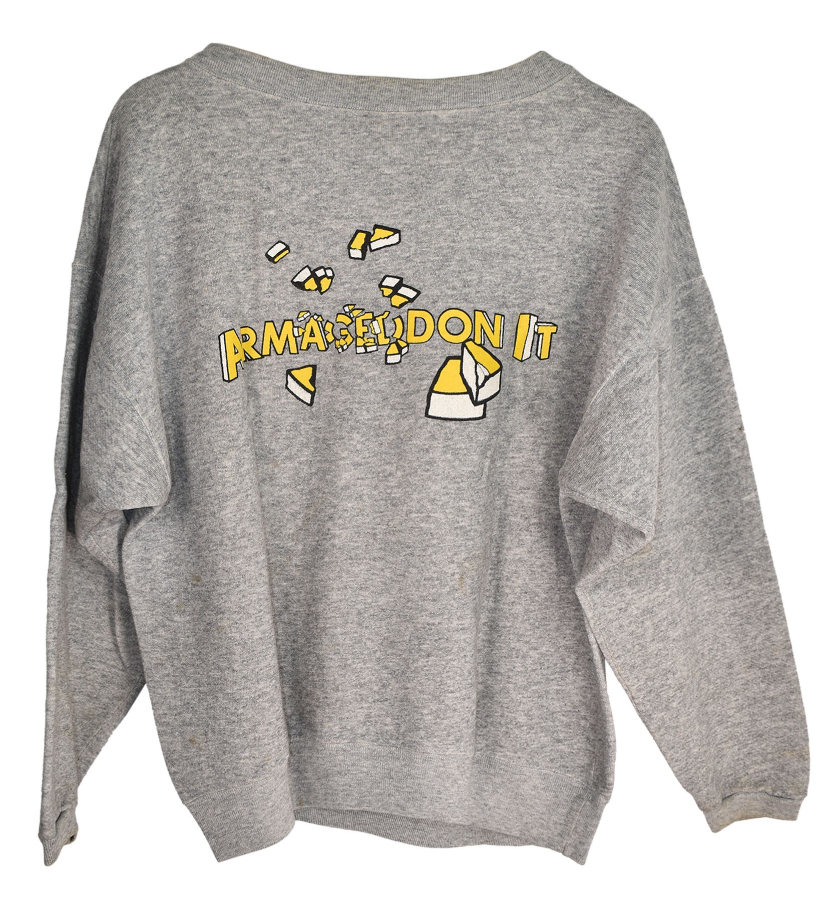 Steve's personal "Armageddon It" sweatshirt, worn during the Hysteria Tour, circa 1987. Courtesy of the Lorelei Shellist Private Collection.