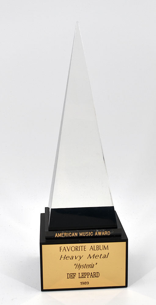 Steve Clark's own 1989 American Music Award statue, presented to the band for Hysteria, the Favorite Heavy Metal Album of the year. From the Lorelei Shellist Private Collection.