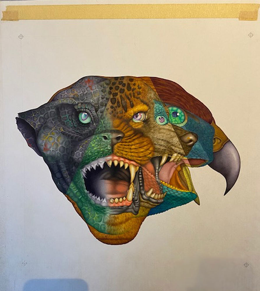 Before it was Hysteria, Def Leppard's follow up to Pyromania was entitled "Animal Instinct," and UK artist Adrian Baumgartner began developing this striking creature cover art. From the Collection of Adrian Baumgartner.