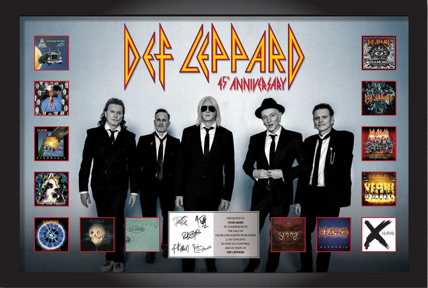 Autographed official Def Leppard Vault 45th Anniversary Commemorative plaque! Celebrate over 100 Million albums sold worldwide, 2,100 concerts in over 50 countries and 45 years of Def Leppard!