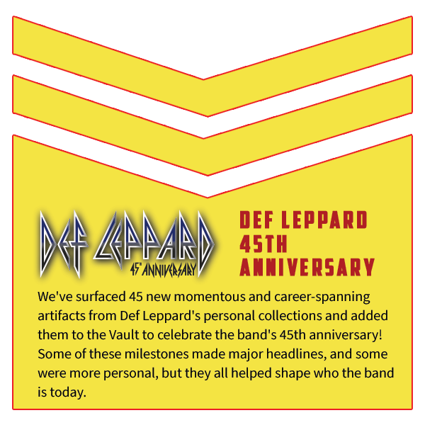 Def Leppard's first public performance was 18 July 1978, at Sheffield's Westfield School for an end-of-term dance. Although the show had a few technical stumbles, the crowd of about 150 students cheered and demanded an encore. Upon returning home, Joe was sneaking past his parents' bedroom as not to wake them. "My Dad came out and said, 'How did it go, Lad?' and I just went crazy. 'Oh, it was great! They were cheering for us. It was like a real band. They all clapped and came down to the front of the stage, just like they do on TV on Top of The Pops.' He was real happy for me, too. From then on, I had their blessing to go out and play rock and roll." From the Collection of Joe Elliott.